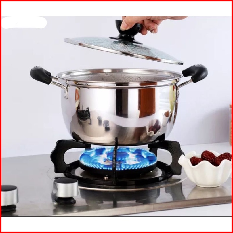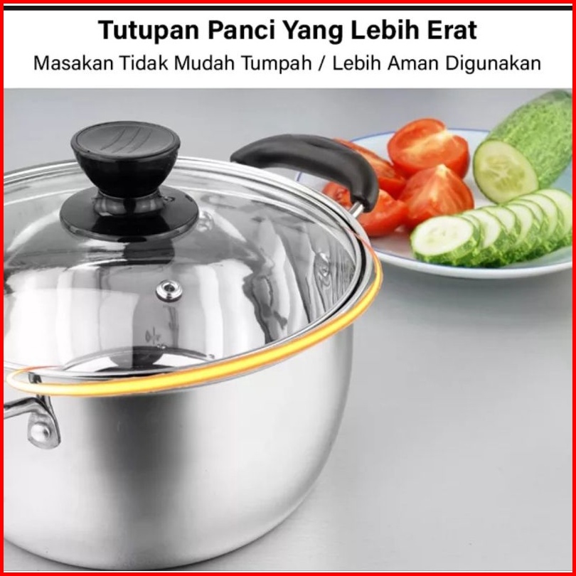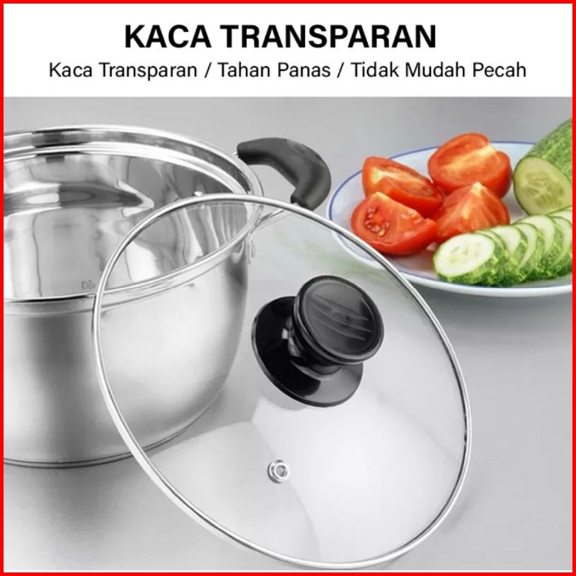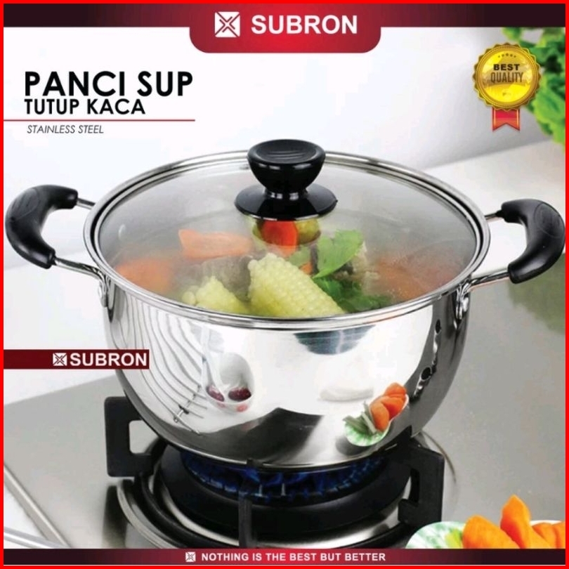 Panci Kuah Sup Tutup Kaca Subron Stainless Steel Premium Quality Sauce Pot W Glass Lid 18cm 20cm 22cm 24cm 26cm