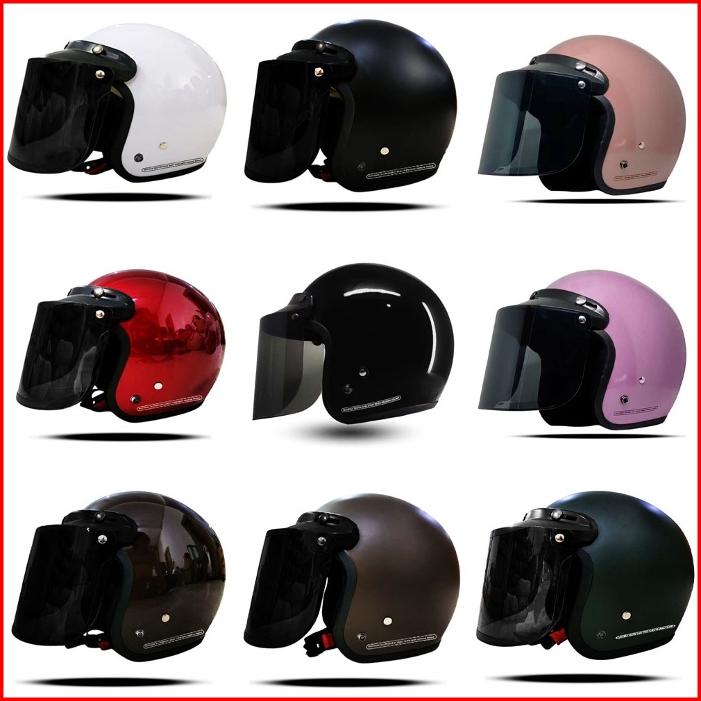 Terlaris Helm Bogo Polos Dewasa Full Leher Sni Retropria Wanita Kaca Datar