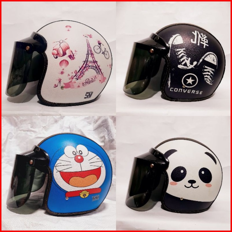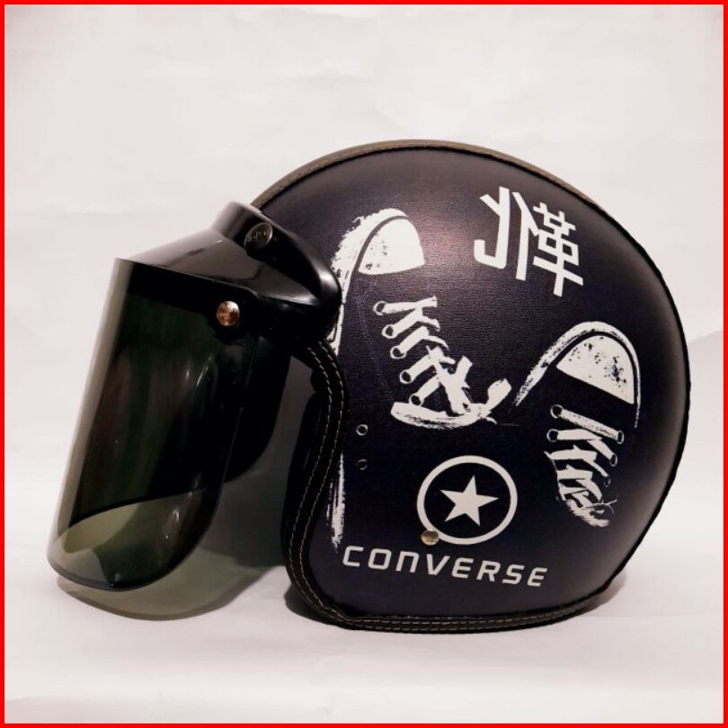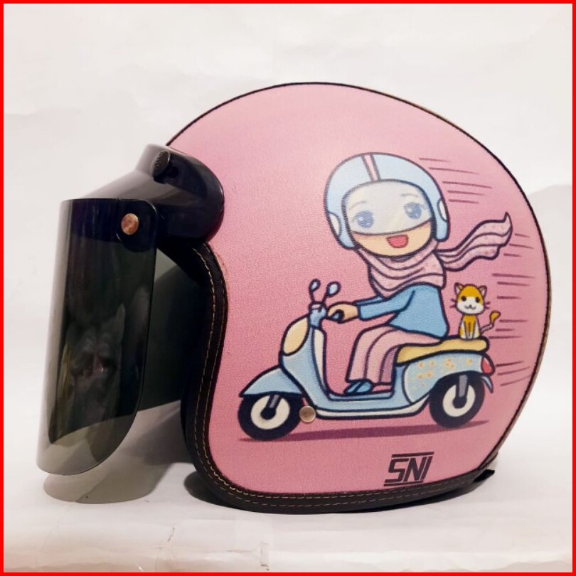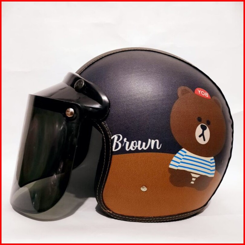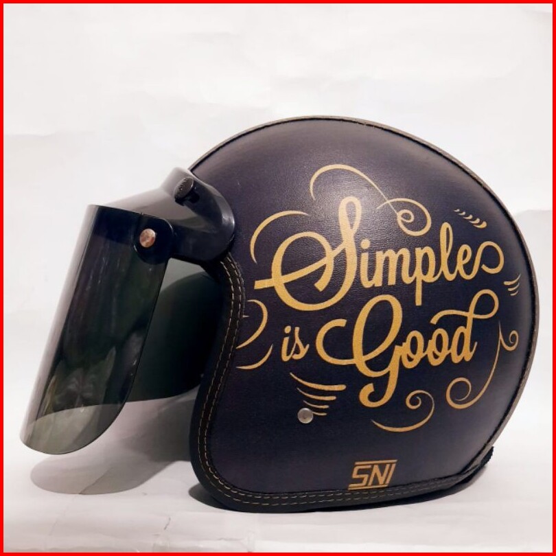 Helm Bogo Full Leher Kulit Dewasa Full Leher Kaca Flat Datar