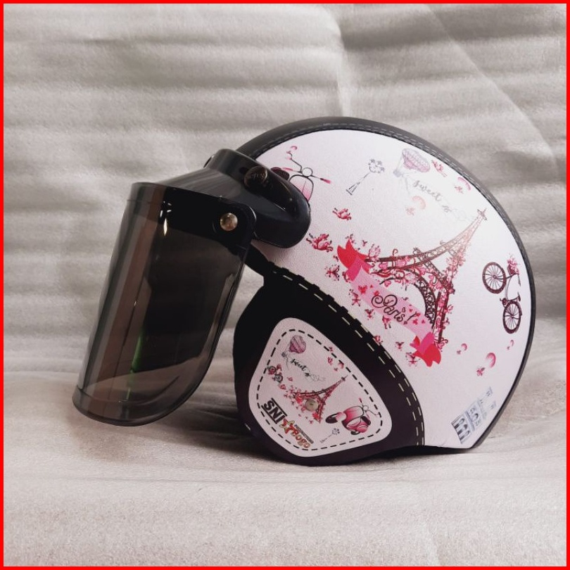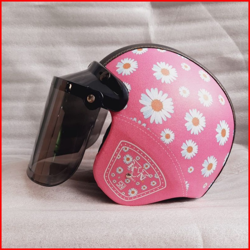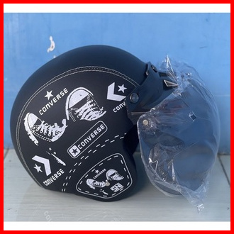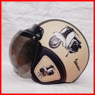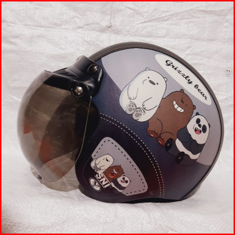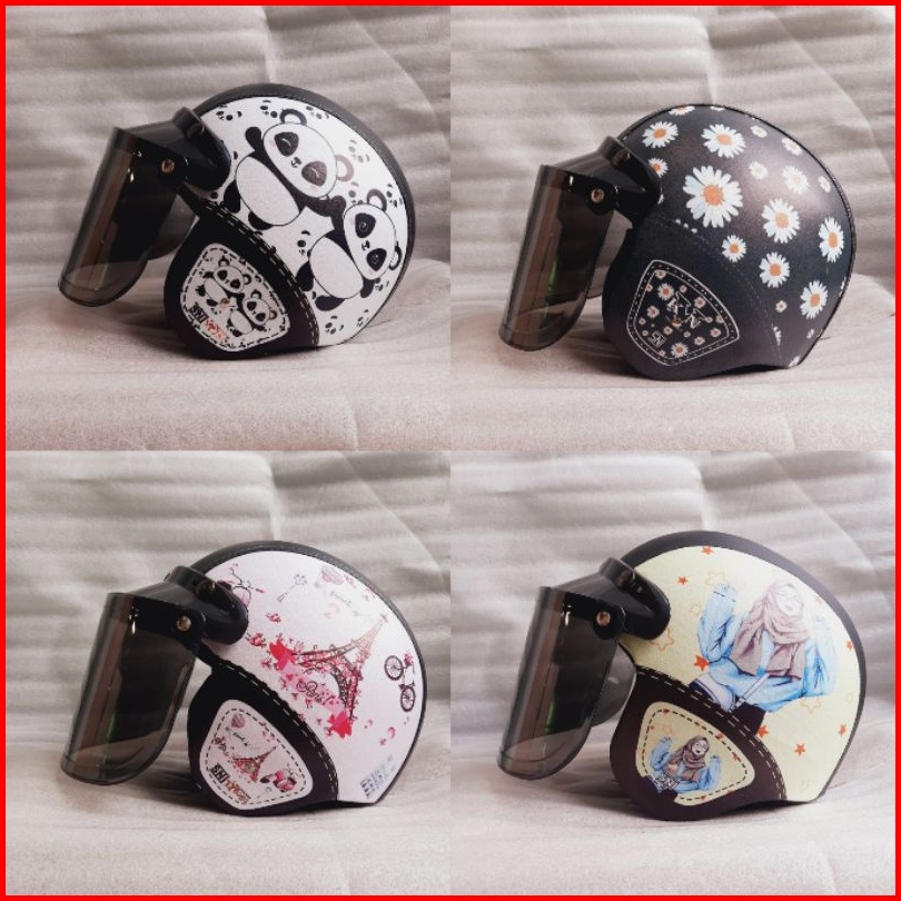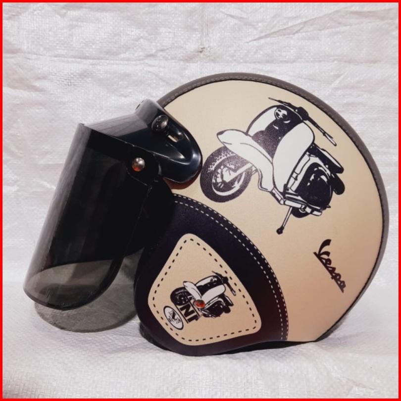 Helm Bogo Dewasa Press Kaca Flat Retro Datar Motif