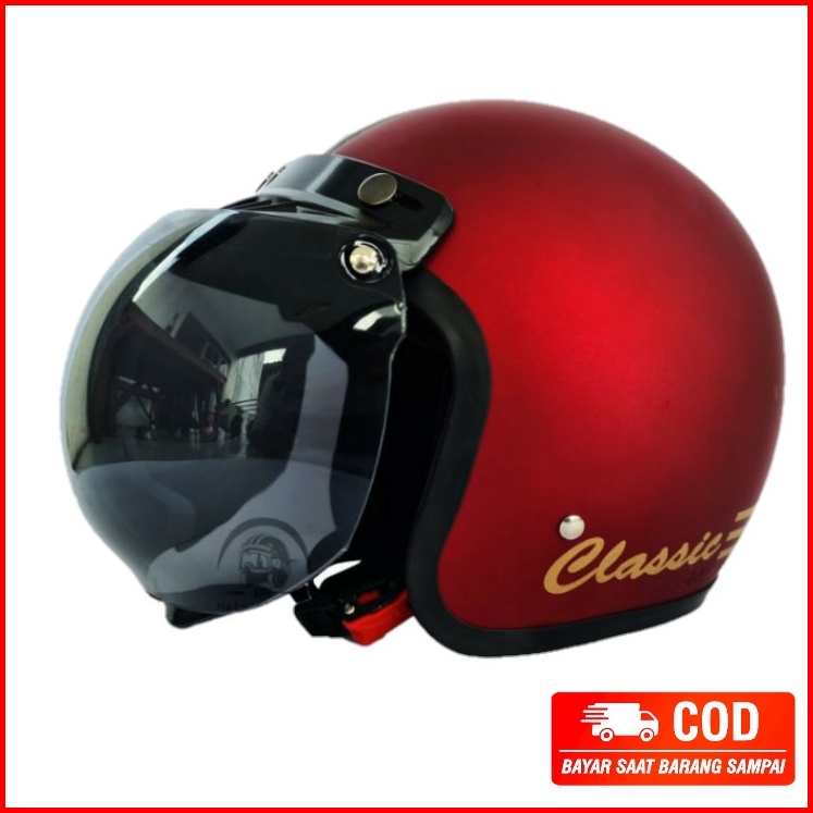 Helm Bogo Classic Pria Wanita Helm Bogo Garis Tiga Full Leher