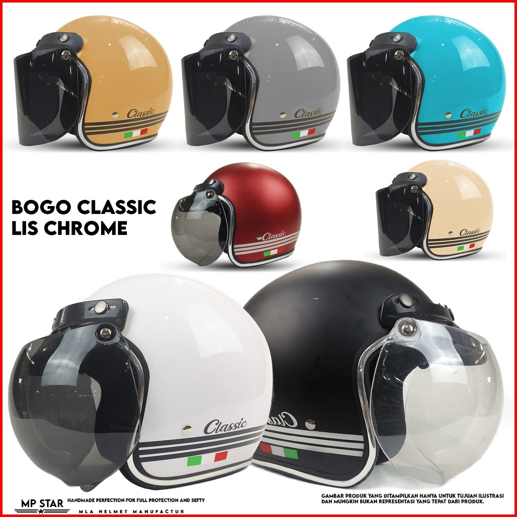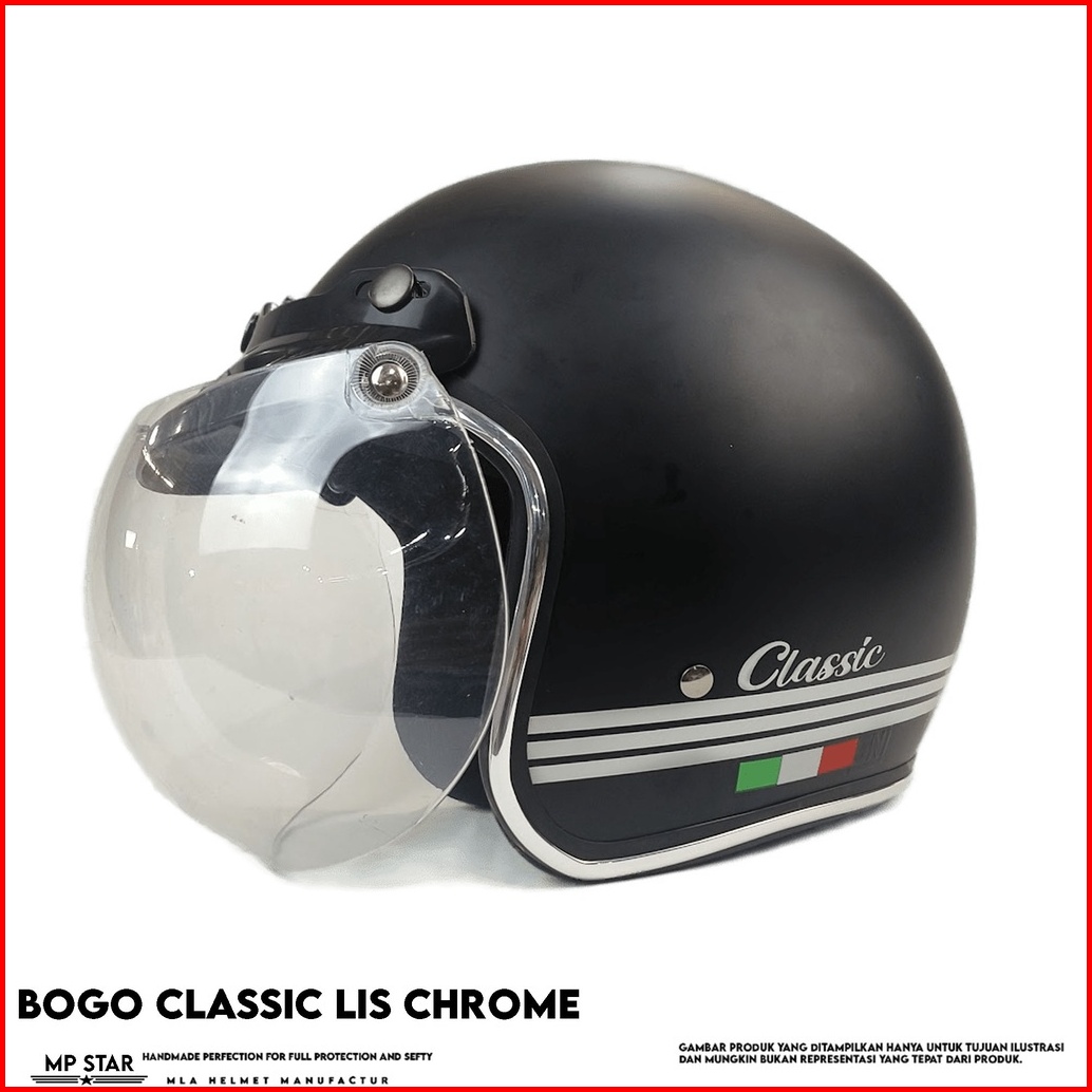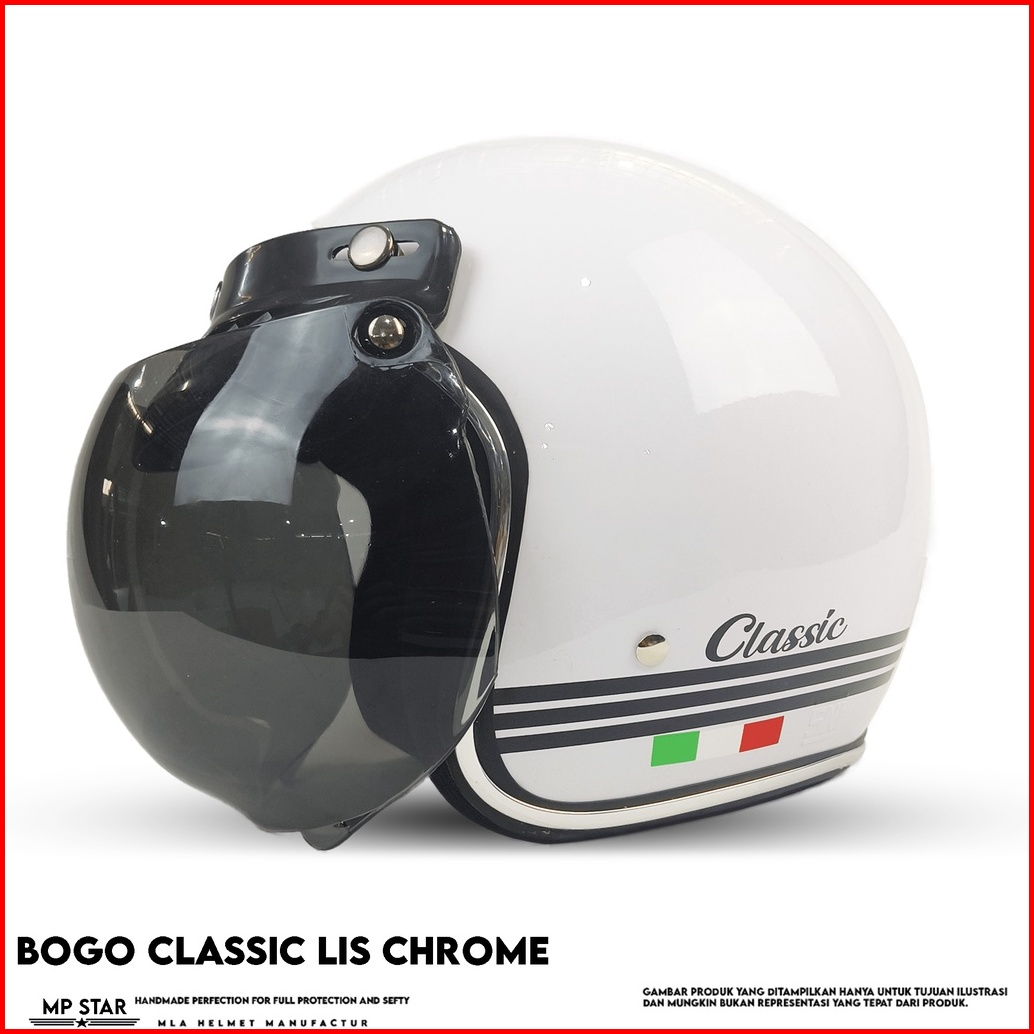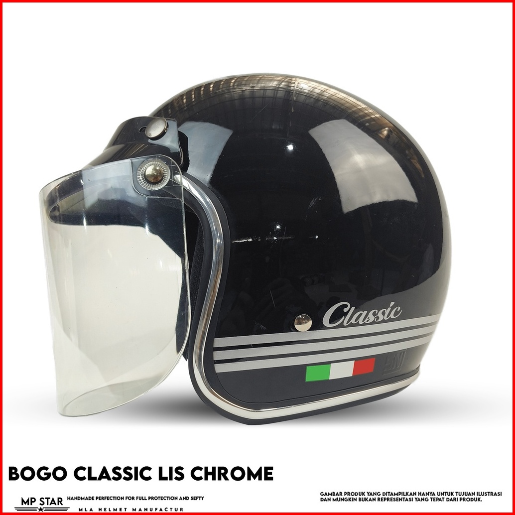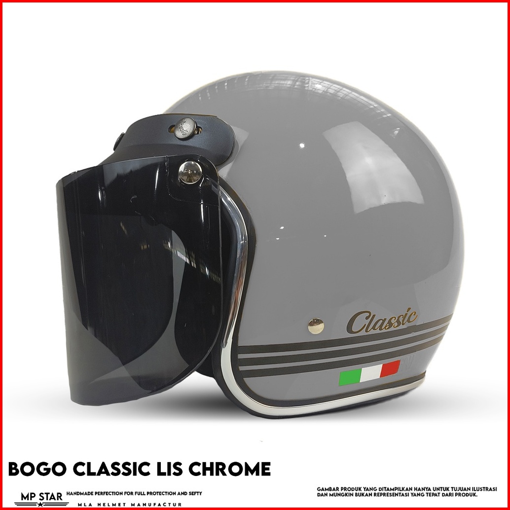 Helm Bogo Classic Lis Chrome Full Leher Bogo Premium Untuk Helm Pria Dan Wanita Dewasa Sni