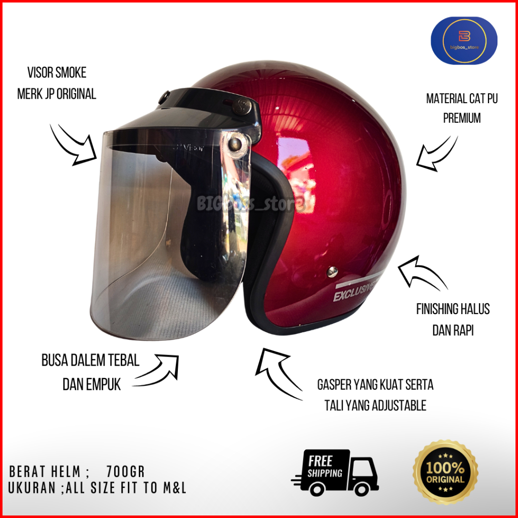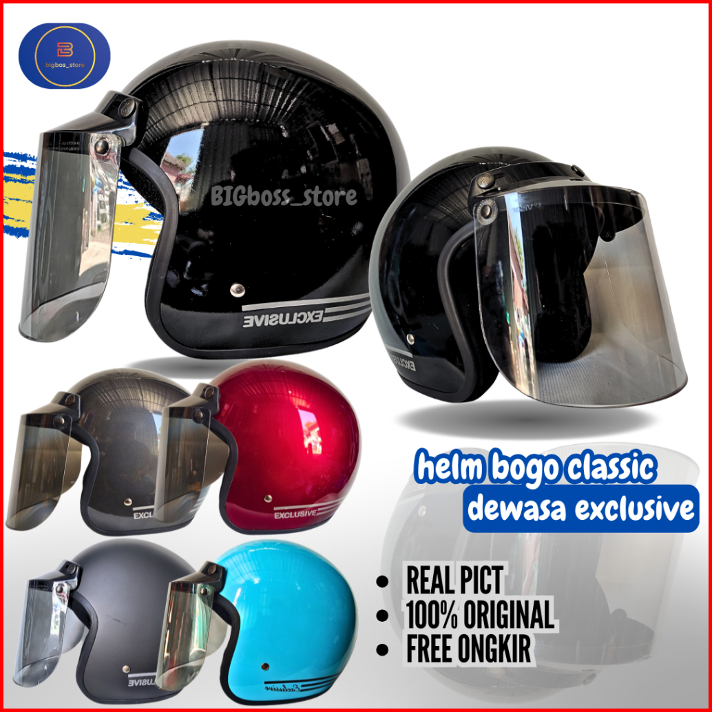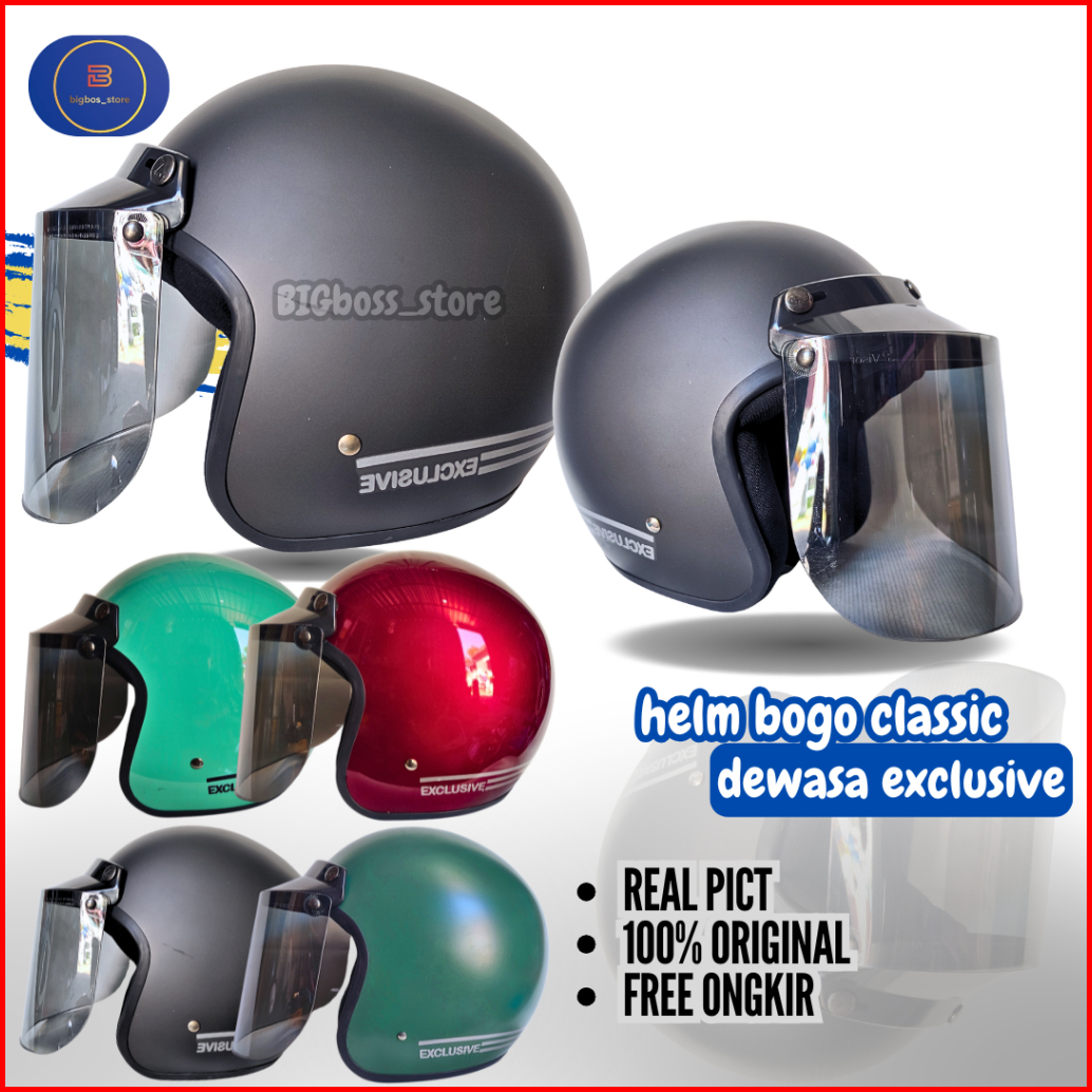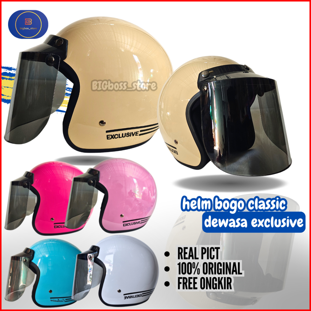 Helm Bogo Classic Dewasa Half Face Sni Dfa Helmet Motor Retro Cowok Cewek Pria Wanita Cepol Hijab