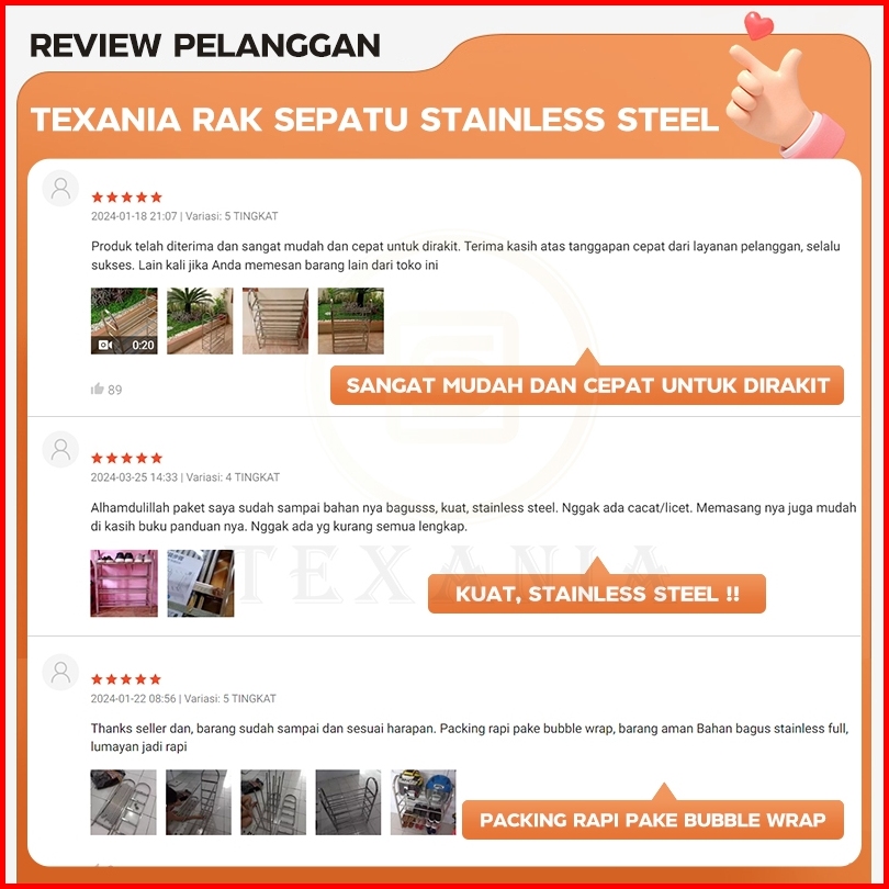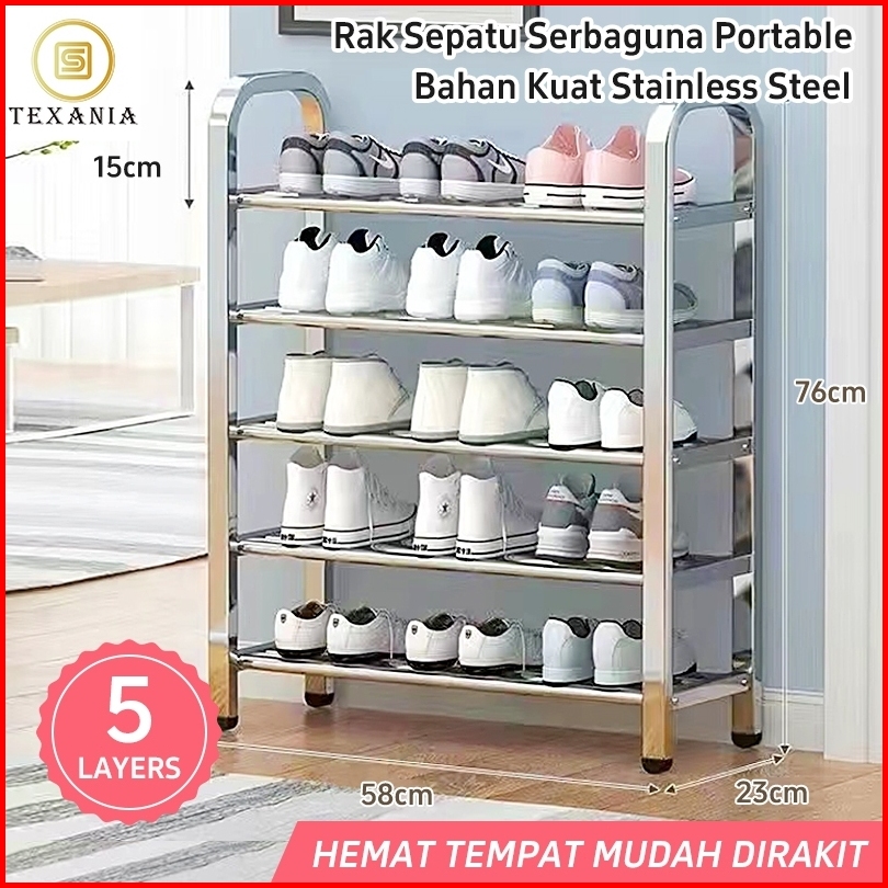Kualitas Terbaiktexania Rak Sepatu Stainless Steel Tingkat 3 4 5 Susun Kuat Produk Telah Siap Dikirim