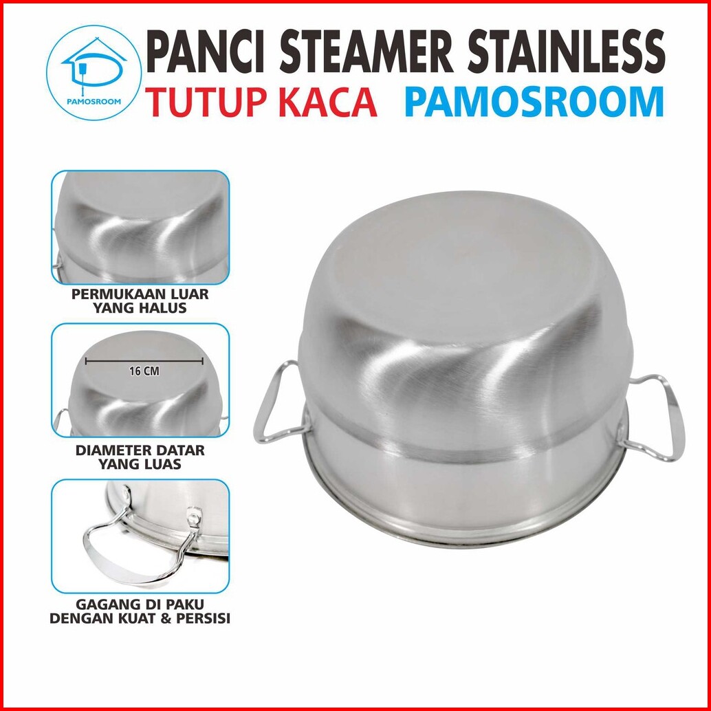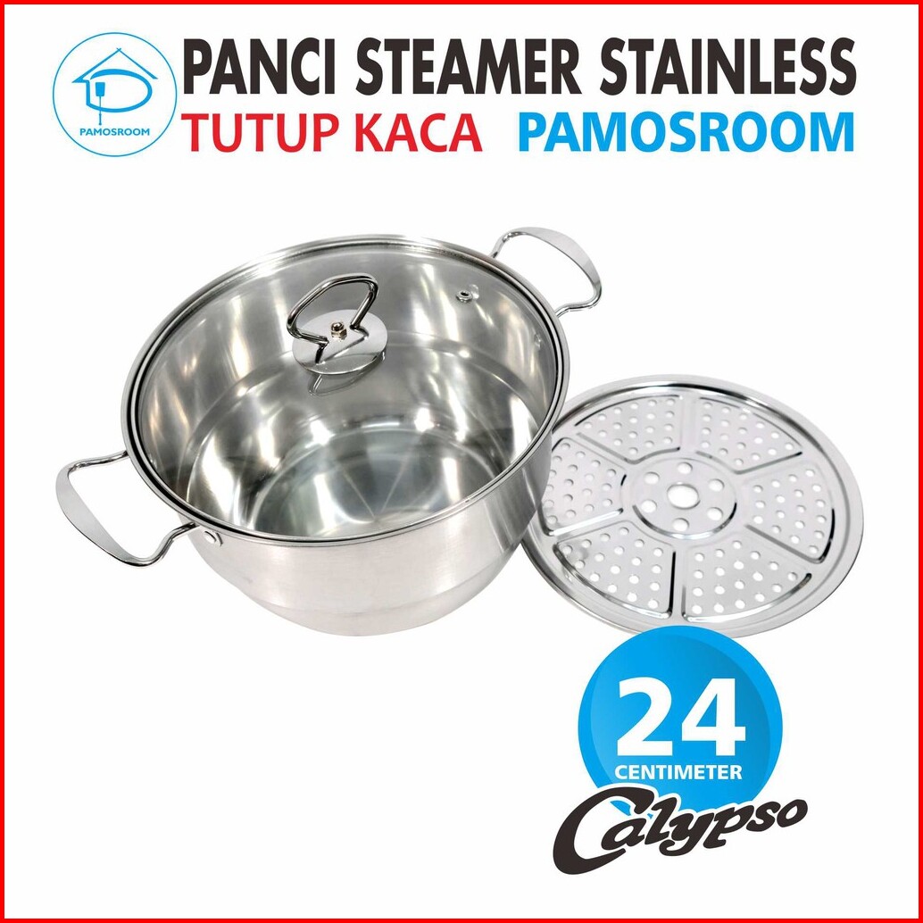 Calypso Panci Steamer Stainless 24cm Tutup Kaca 24 Cm Free Kukusan