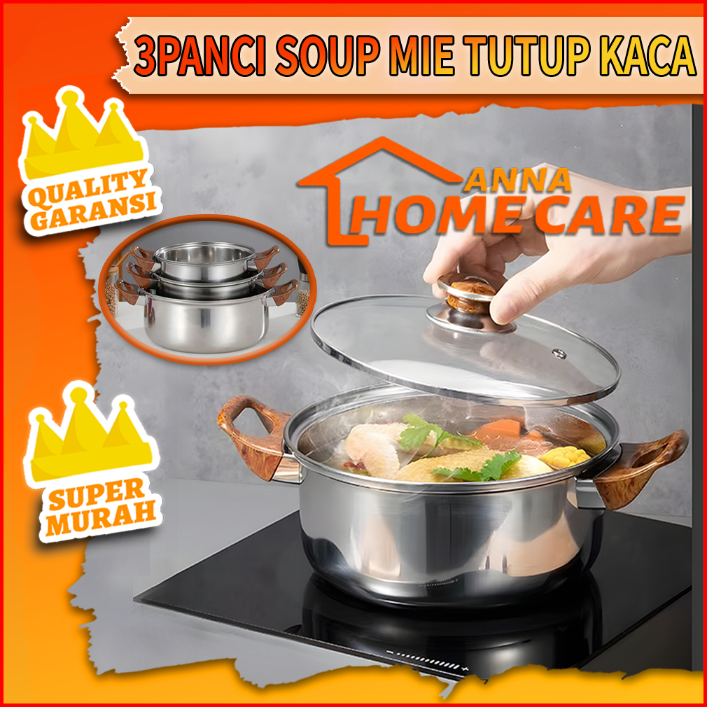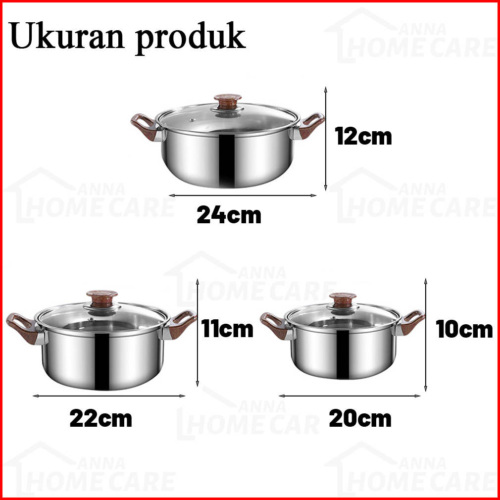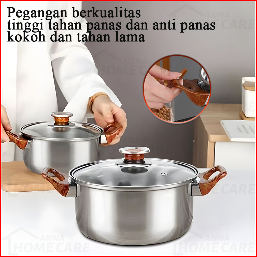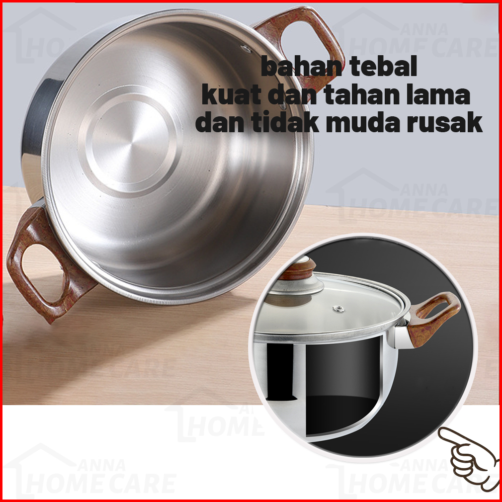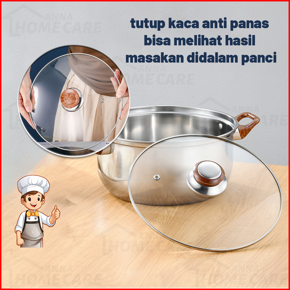 Anna Panci Sop Stainless Panci Susu - Milk Pan Soup Pot Panci Sayur Panci Kuping Panci Stainless Tutup Kaca Panci Gagapa