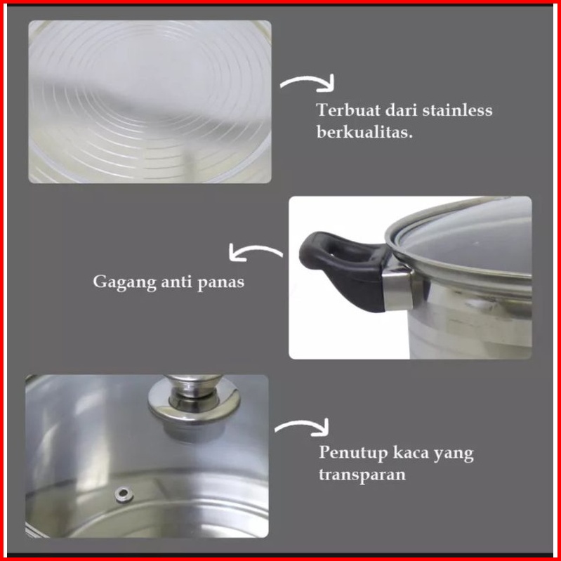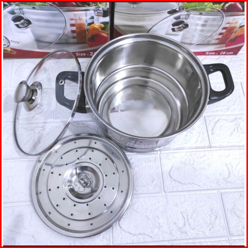 Panci Rosh Sauce Pot Steamer 28cm Original Panci Kukus Kukusan Stainless 28cm Saucepot Rosh Panci Soup Rosh Stainless Tu