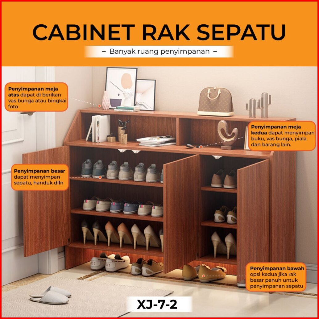 Fh8 Rak Sepatu Kayu Anti Debu Rak Lemari Sepatu Tertutup Rak Susun Minimalis Modern