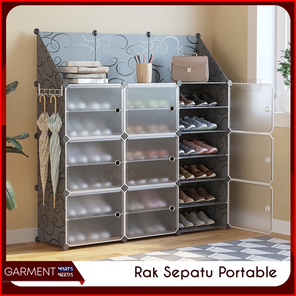 Rak Sepatu Anti Debu Tempat Penyimpanan Shoe Rack Portable Serbaguna Kotak Tertutup Free Gantungan