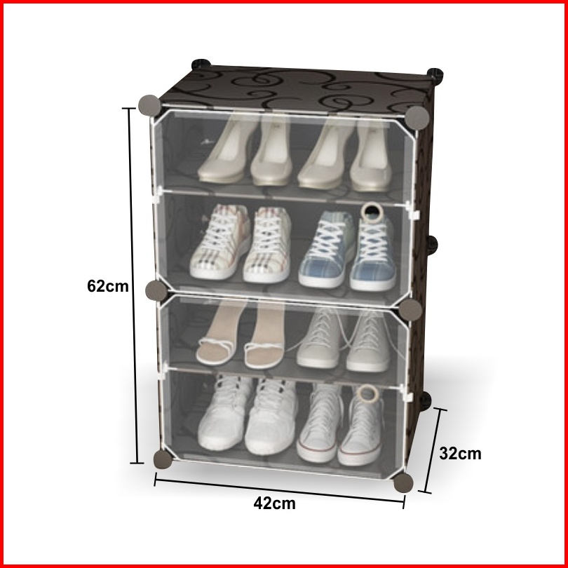 Rak Sepatu Portable 2 Kolom 4 Kotak Sendal Tebal Tertutup Anti Debu Lemari Sepatu Minimalis 4 Susun - Unikdekorasi