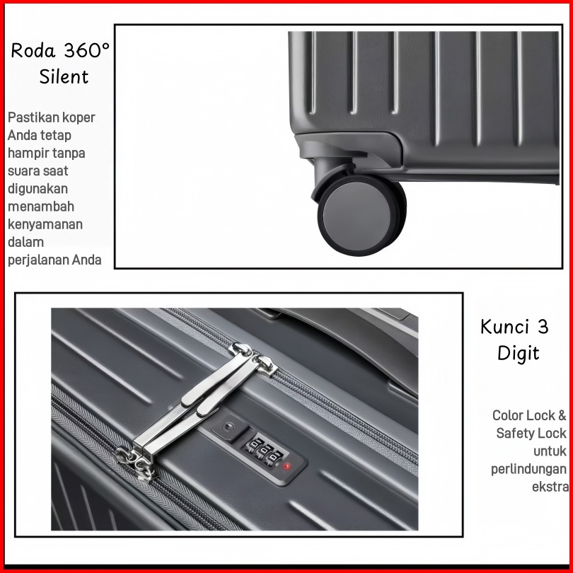 Jzr Suitcase Koper Penerbangan 20 Inci Koper Kapasitas Besar 24 Inci Koper Tas Perjalanan Abs Pc Tahan Guncangan 360o Ro