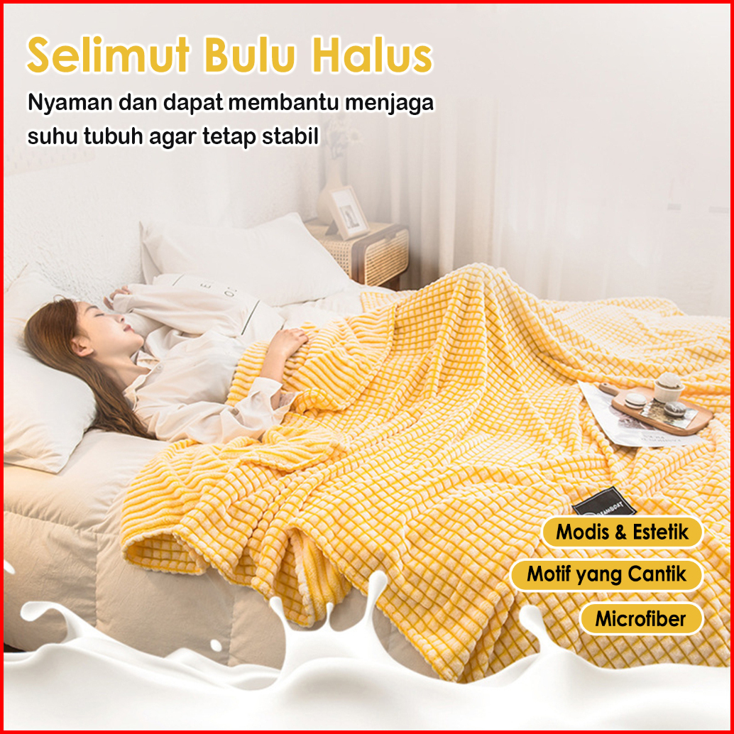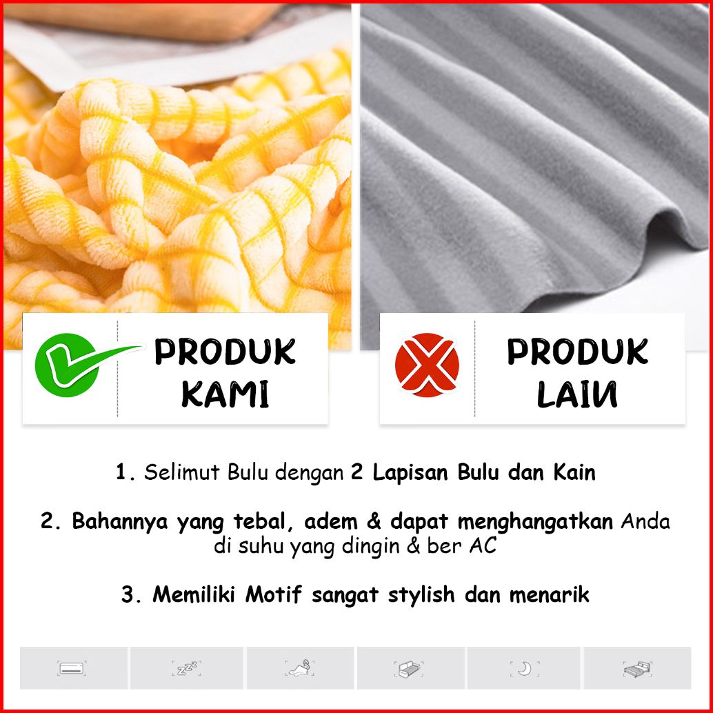 Selimut Bulu Dewasa Microfiber Ukuran 150 Cm X 180 Cm Selimut Bulu Hangat Tebal Motif Square Mt-26a
