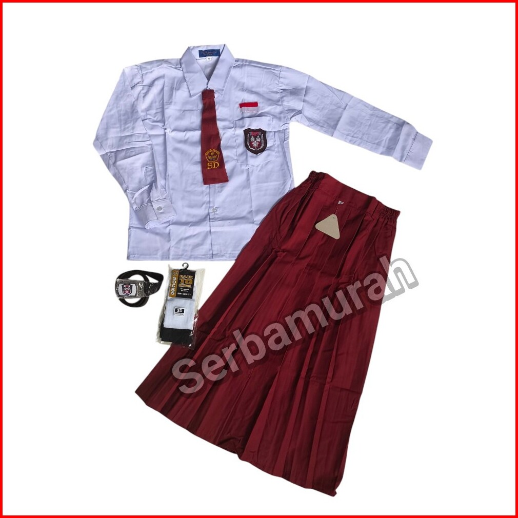 Set Lengkap Seragam Sekolah Perempuan Lengan Panjang Rok Panajang 1 Sampai 6 Sd