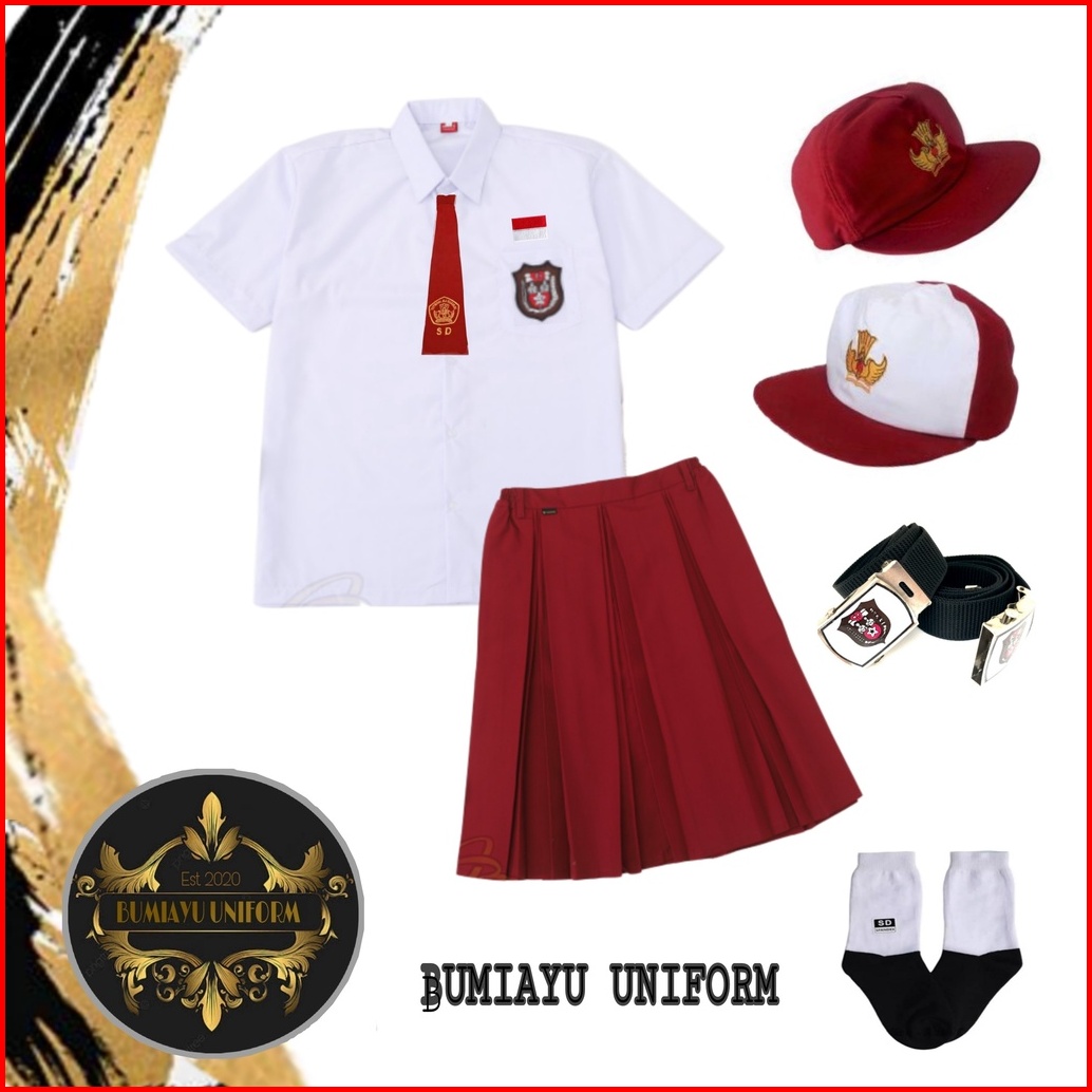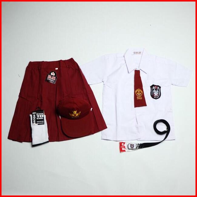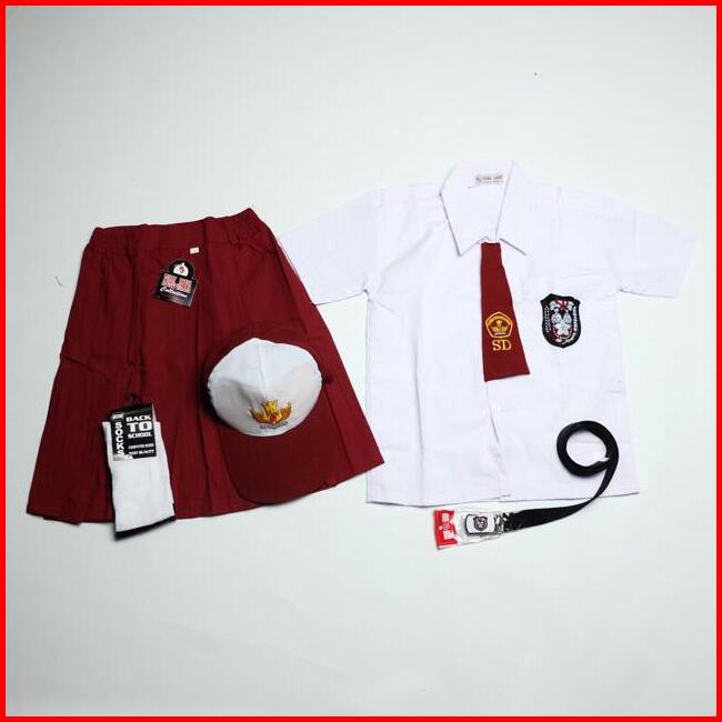 Setelan Seragam Merah Putih Sd Anak Perempuan Pendek Lengkap Kelas 1-6 Sd Free Topi Sekolah Sd