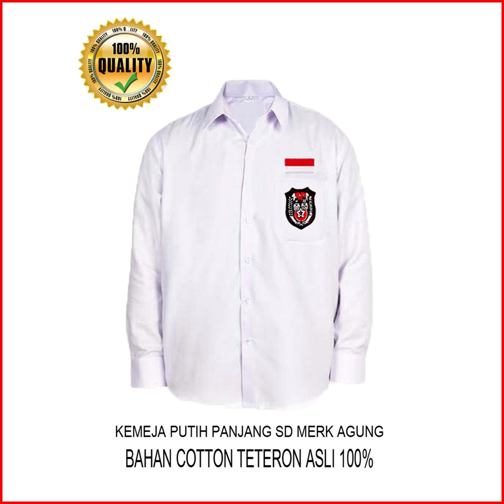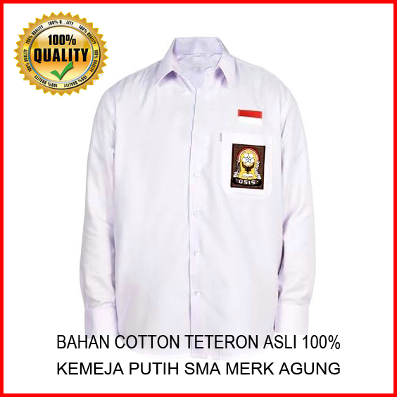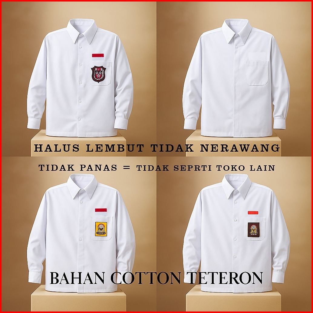 Kemeja Seragam Sekolah Sd Smp Sma Baju Putih Panjang Anak Laki-laki Perempuan Kain Katun Teteron