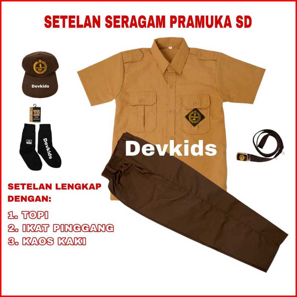 Devkids Setelan Super Lengkap Seragam Sekolah Sd Pramuka Lengan Pendek Laki-laki Kelas 1-6 Sd