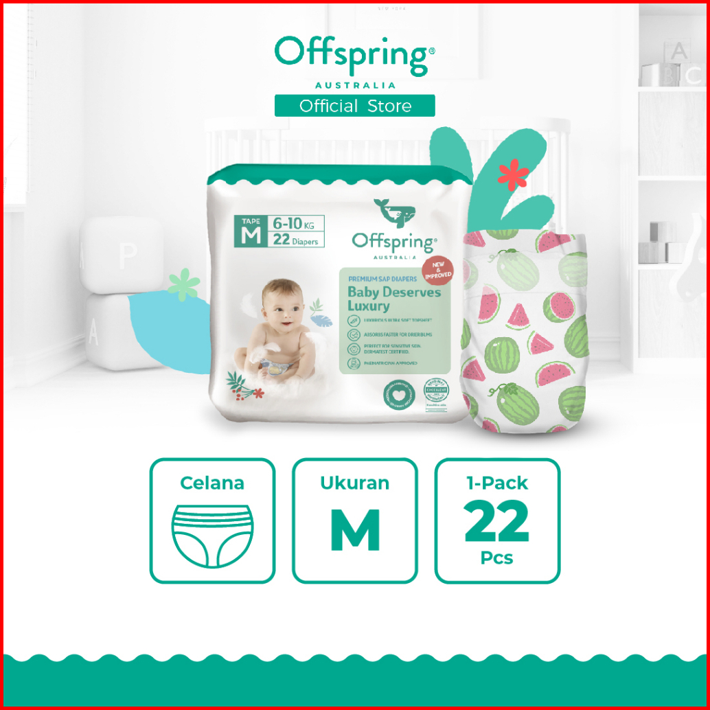 Offspring Popok Bayi Diaper Sap Bebas Klorin Small Pack - Celana M22