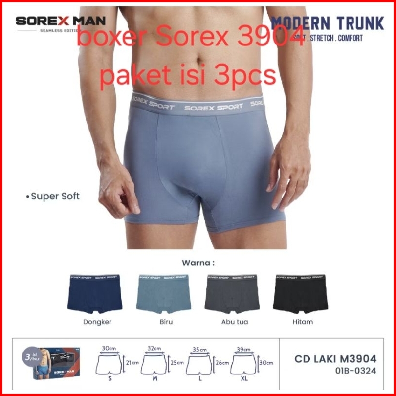 Paket Isi 3.pcs.boxer Pria Sorex 3906 3904