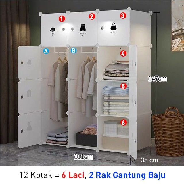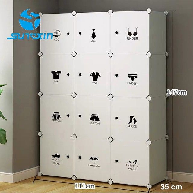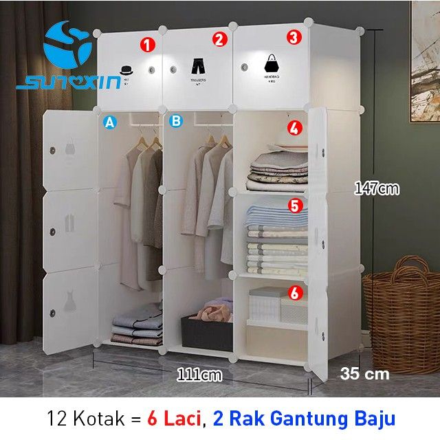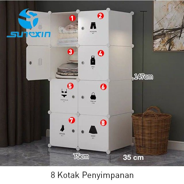SUNXIN - LEMARI PENYIMPANAN BAJU PORTABEL BONGKAR PASANG 8 ATAU 12 PINTU
