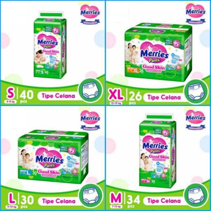 PAMPERS MERRIES (CELANA) NBS40 / M34 / L30 / XL26 / XXL28 GOOD SKIN PANTS - POPOK.MURAH