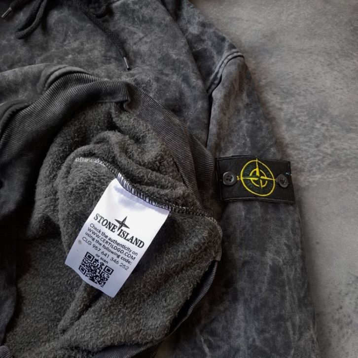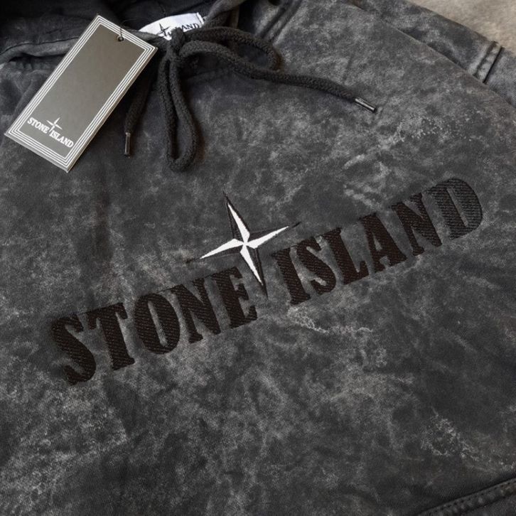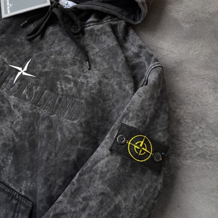 Jaket Sweater Hoodie Stoune Islands Text Bordir Abu Washing Fulltag Aksesoris Basic Kasual Keren Dan Kekinian Sweatersh