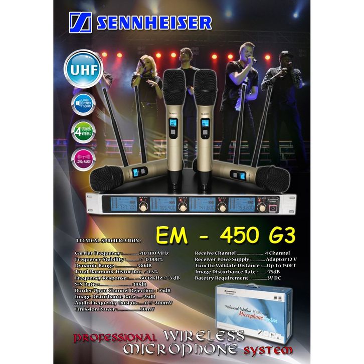 Mic Wireless Sennheiser Em 450g3 Original Microphone Karaoke 4 Ch Handle Tanpa Kabel