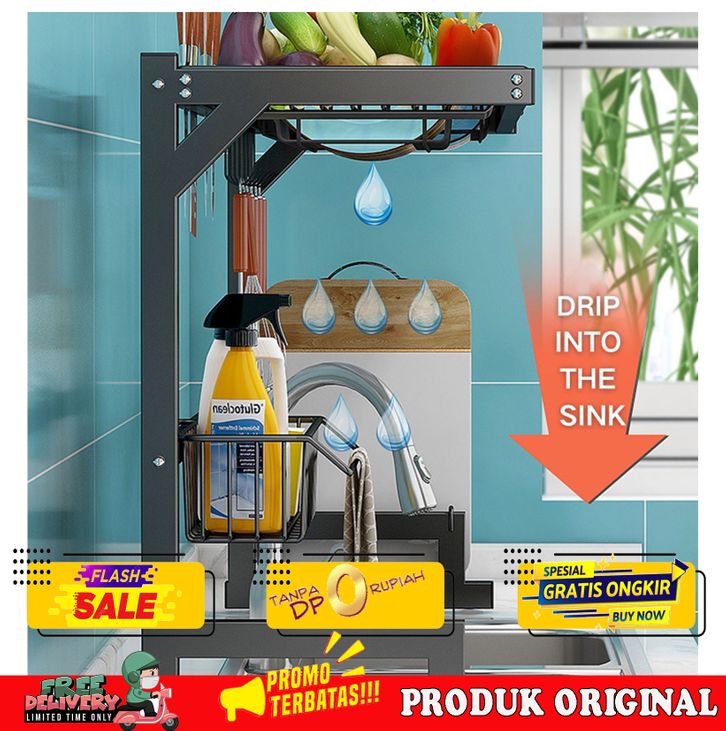 RAK WASTAFEL CUCI PIRING STAINLESS RAK DAPUR RAK BUMBU1/2 RAK 65/85/125 PERALATAN DAPUR KOKOH KUAT 2 UKURAN