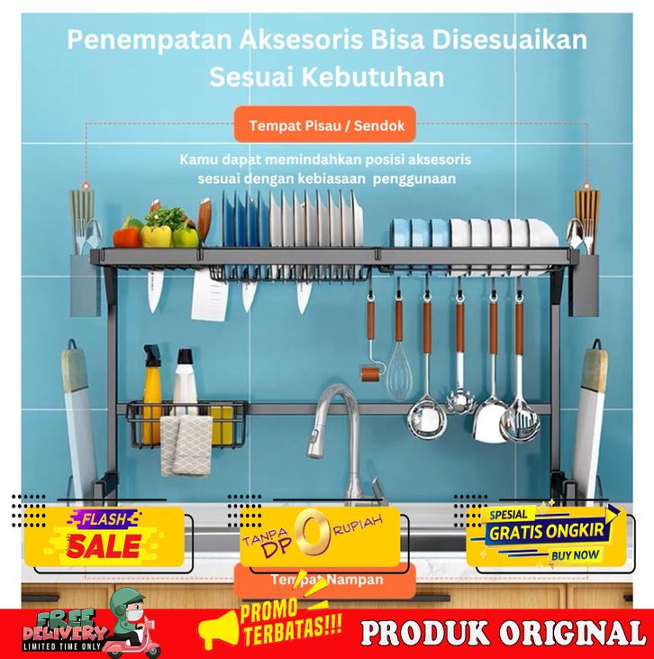PROMO!!!ES RAK PIRING WASTAFEL STAINLESS STEEL RAK CUCI PIRING DAPUR RAK PENYIMPANAN PIRING