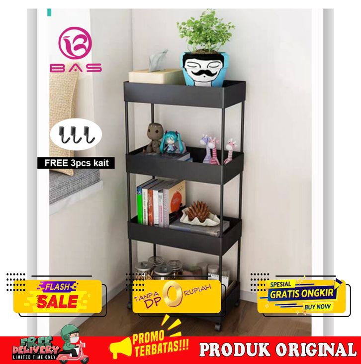 PROMO!!!BAS SQUARE RAK TROLI RAK DAPUR RAK SERBAGUNA 4 TINGKAT DENGAN RODA