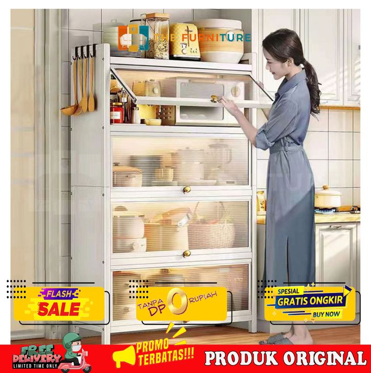 RAK PIRING TERTUTUP / RAK DAPUR / RAK SUSUN SERBAGUNA / LEMARI PIRING / RAK PENYIMPANAN MULTI-LAYER DENGAN RODA PINTU