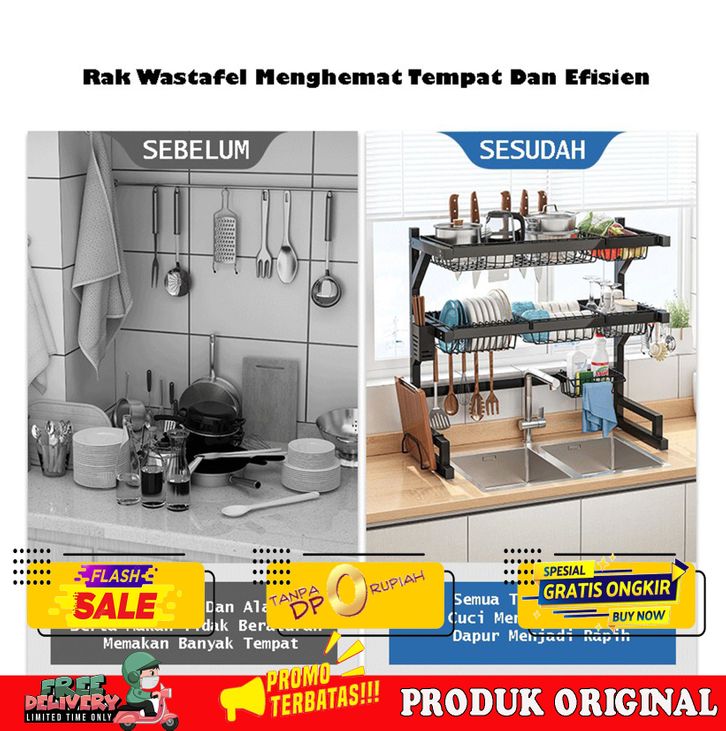 PROMO!!!OLLAHOM RAK DAPUR HITAM RAK WASTAFEL RAK PIRING DAN PERALATAN DAPUR 65 CM DAN 125 CM