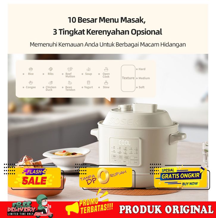 PROMO!!!SOSEKI PANCI PRESTO LISTRIK MULTIFUNGSI 3.0L / 10 MENU PRESSURE COOKER FITUR LEPAS TEKANAN OTOMATIS