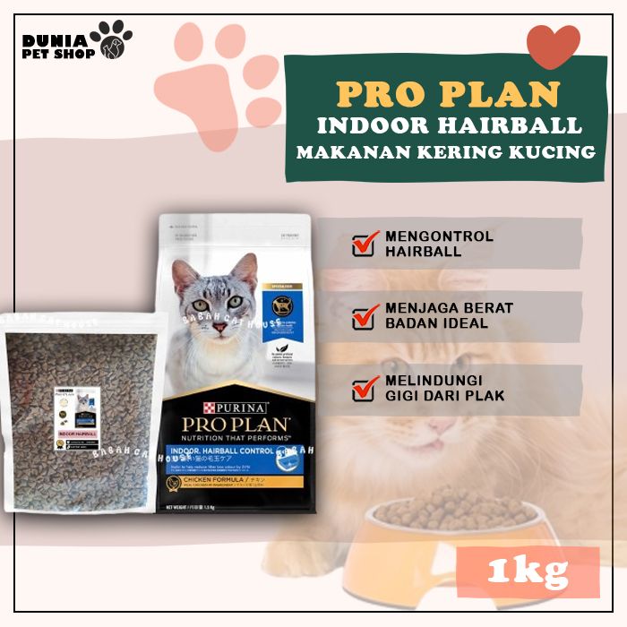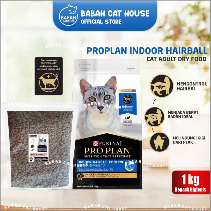 Proplan INDOOR HAIRBALL CONTROL 1kg Makanan Kucing Dewasa Kering Cat Dry Food Anti Hair Ball Bola Bulu Penghilang Rontok