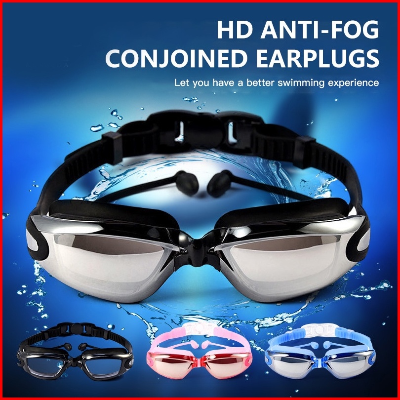 Kacamata Renang Dewasa Anti Fog Uv Earplug