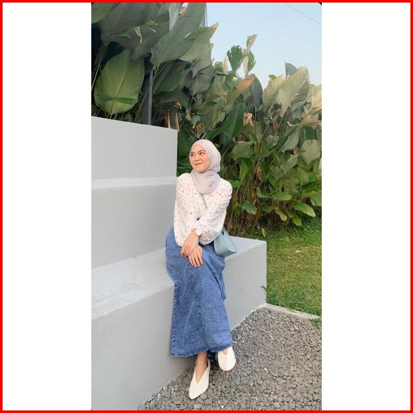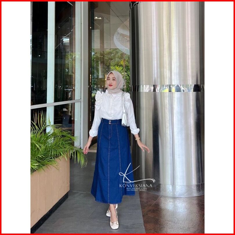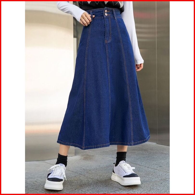 Ellen Rok Jeans Mayung Wanita A-line Skirt Panjang Pinggang Highwaist Premium