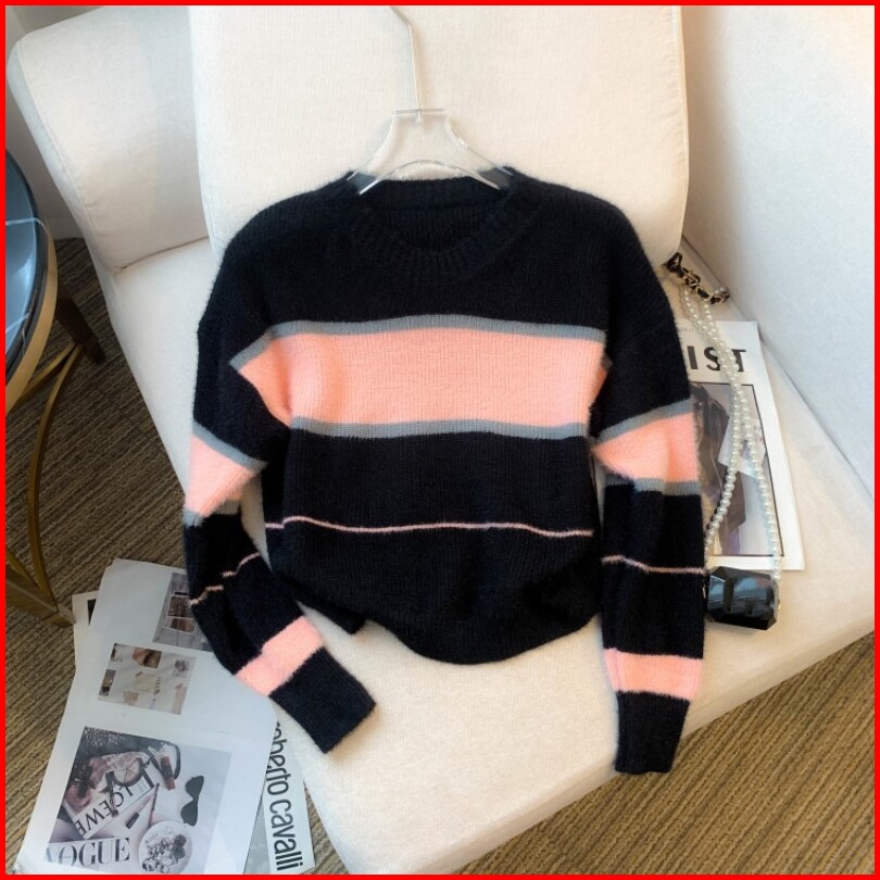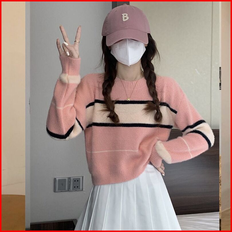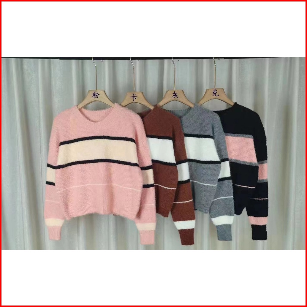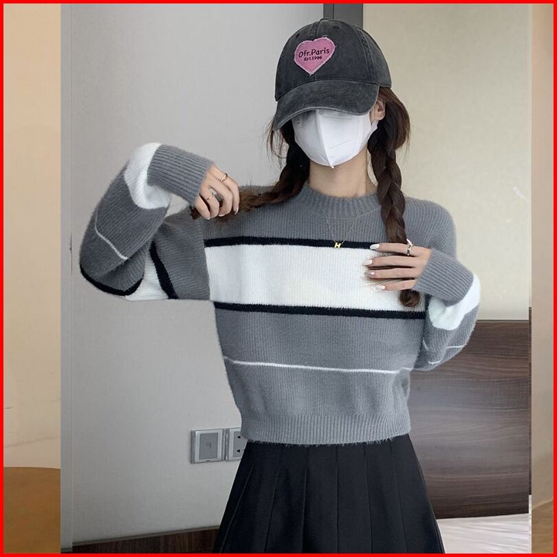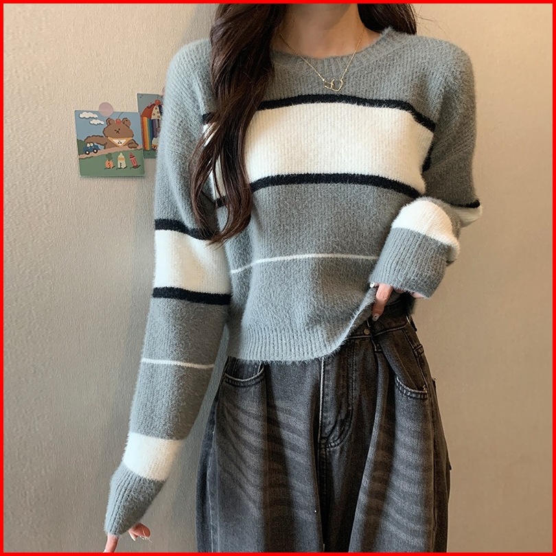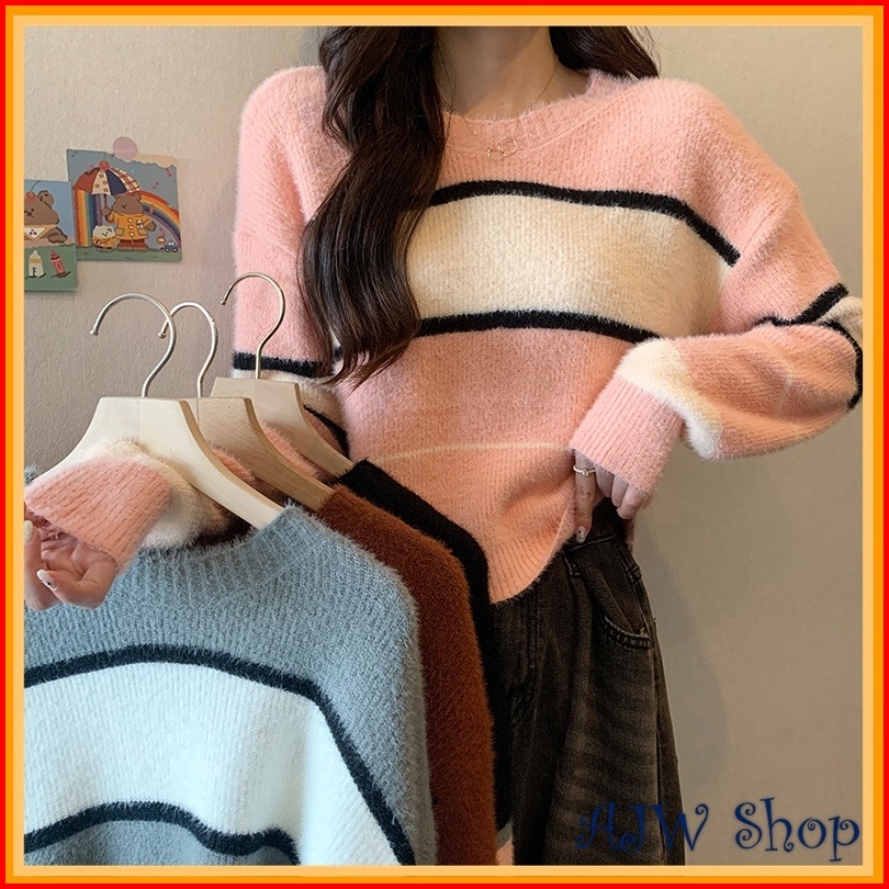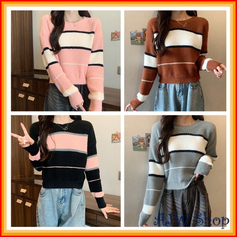 Ajw Sweater Crop Korean Style Knit Import Premium Xcg Sweater Rajut Salur Knit Lengan Panjang Kekinian Casual Korean Sty