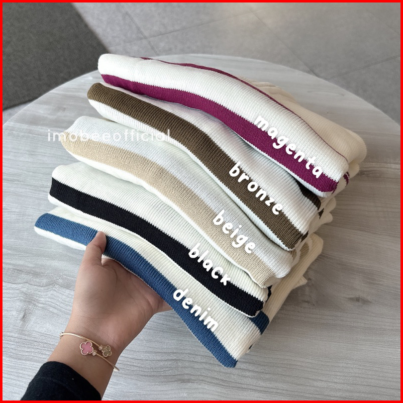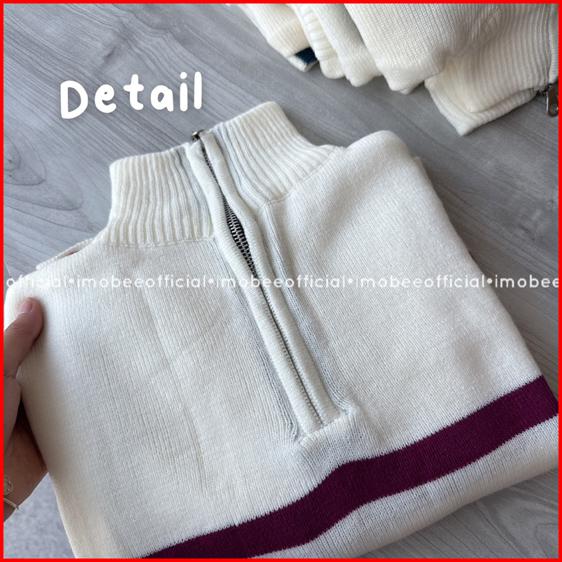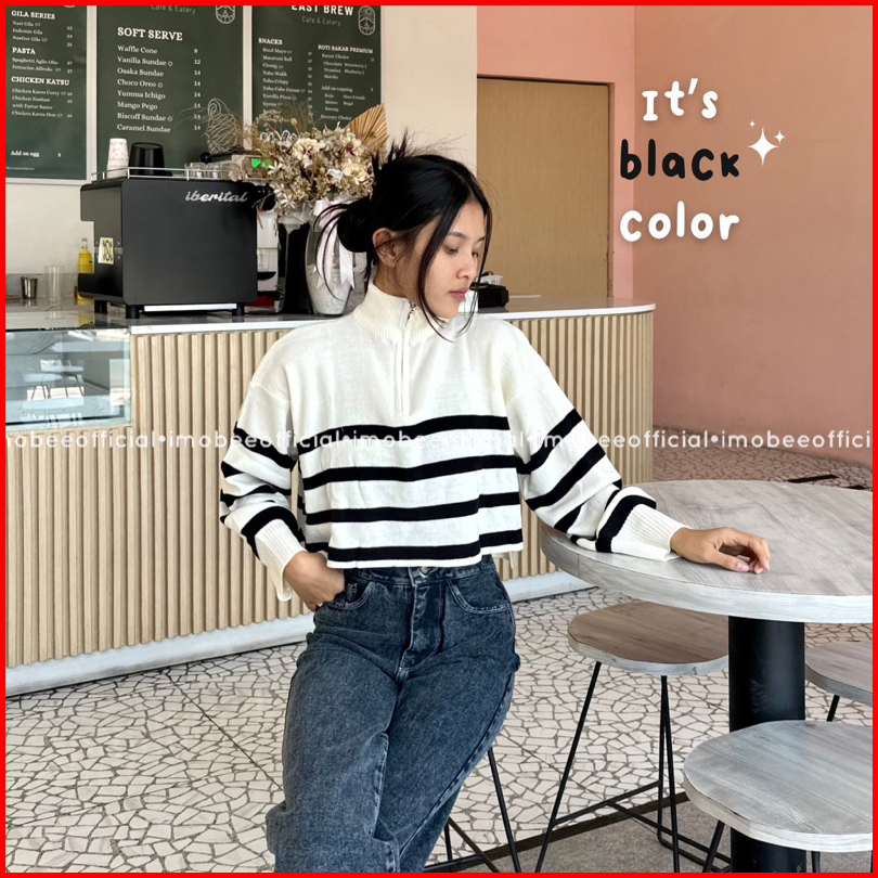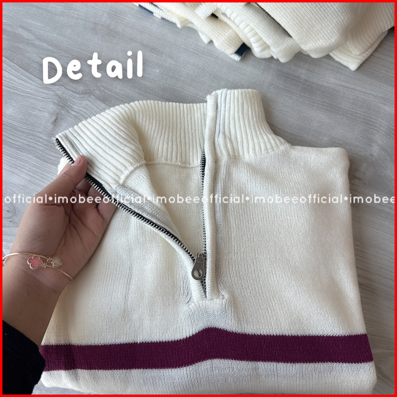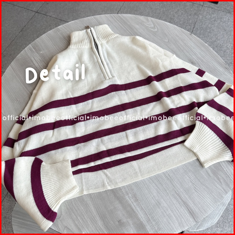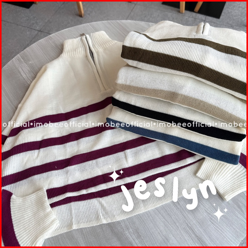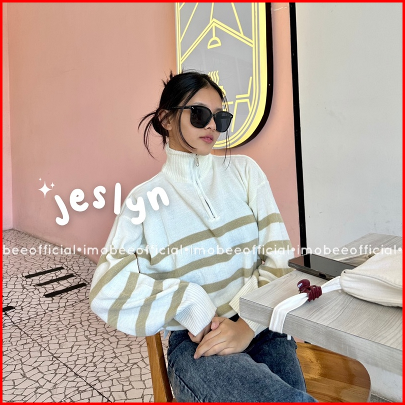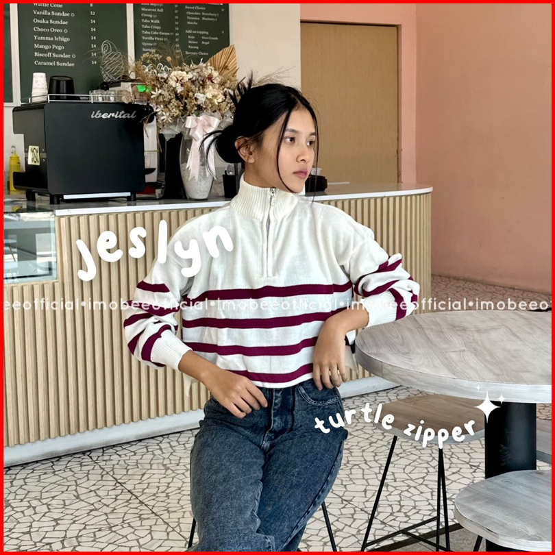 Jeslyn Zipper Sweater Turtleneck Oversize Resleting Rajut Knit Sweater Strip Garis Crop