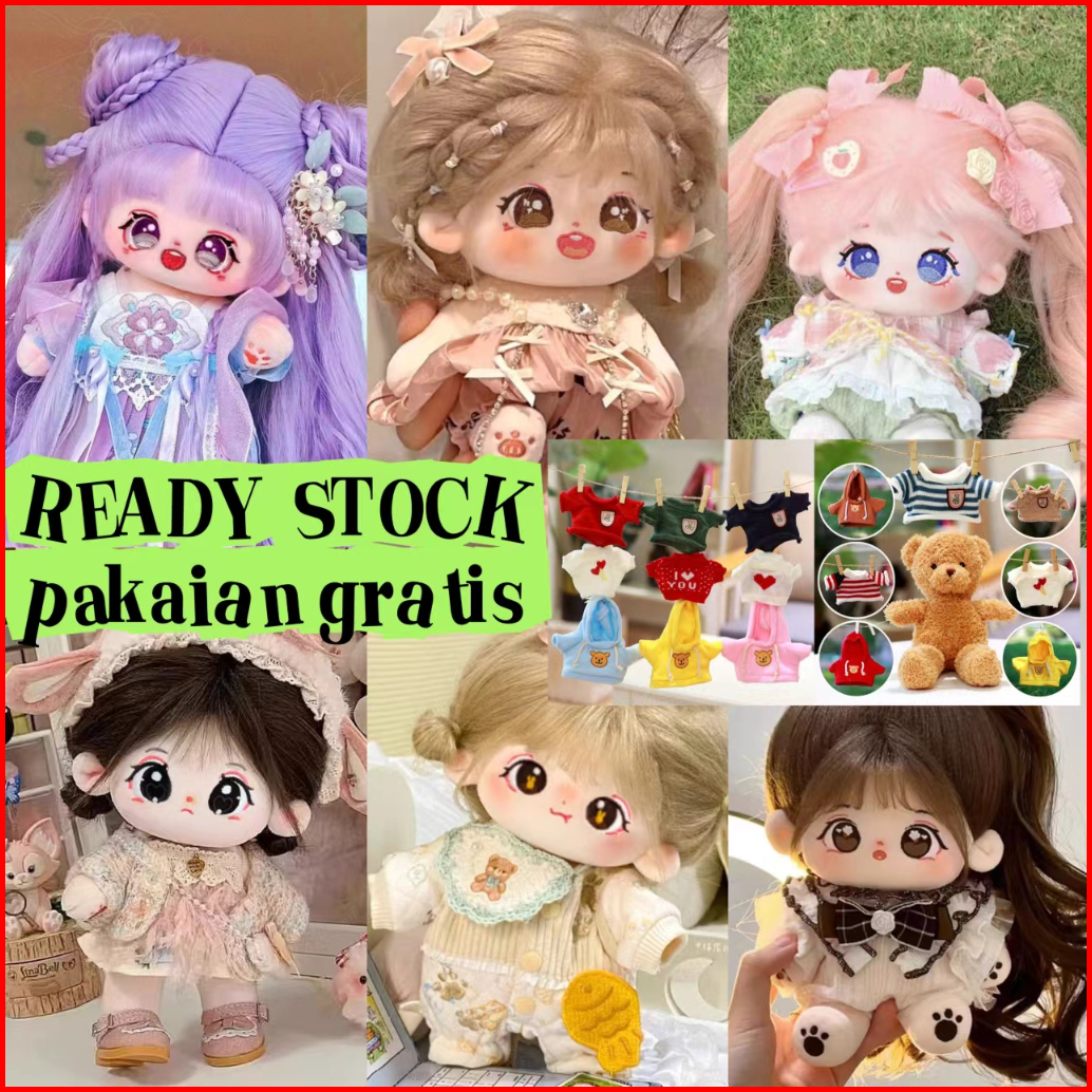 Ready Stock Cotton Doll 20cm Plush Toy Doll Non Attribute Boneka Longhair Doll Boneka Ada Skeleton