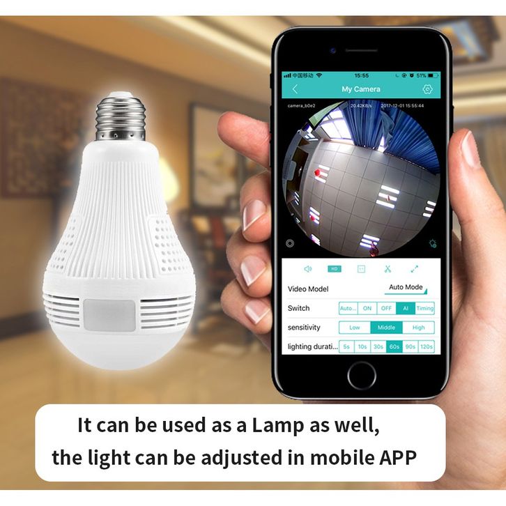 Lampu Bohlam Camera CCTV Kontrol Jarak Jauh IP WiFi Spy Bulb Kamera IR Kamera Pengintai Lampu