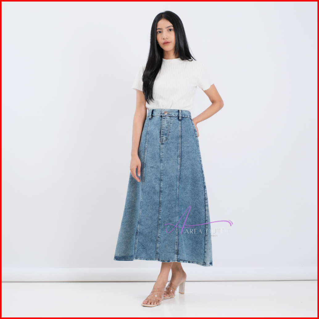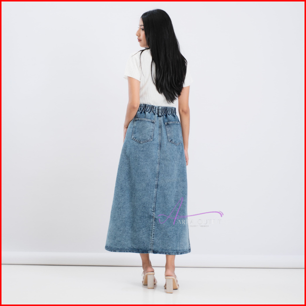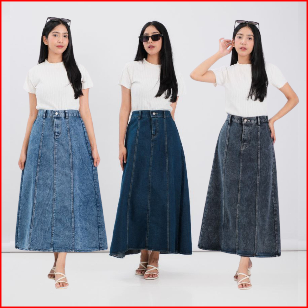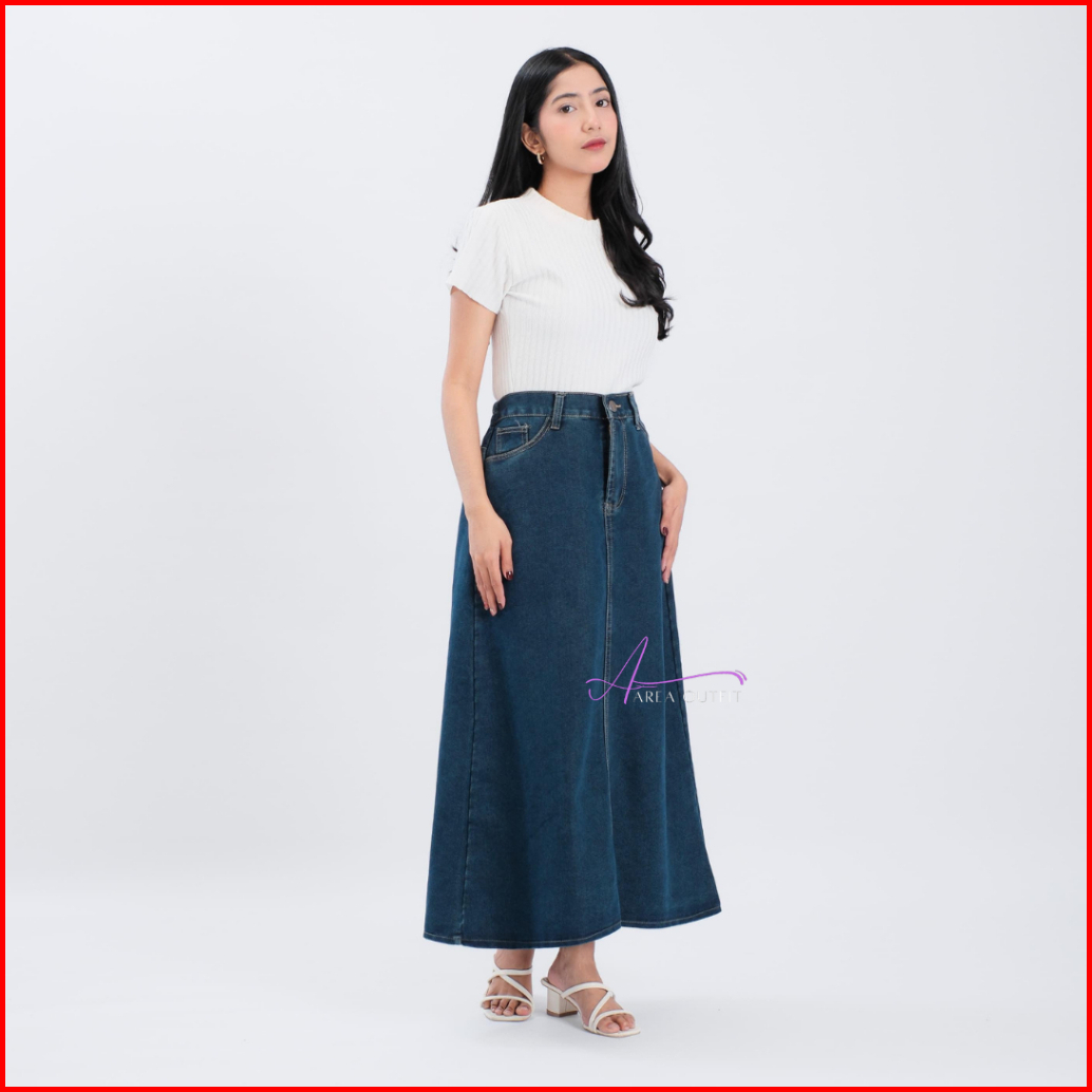 Ellen Rok Jeans Mayung Wanita A- Line Skirt Panjang Pinggang Highwaist Premium