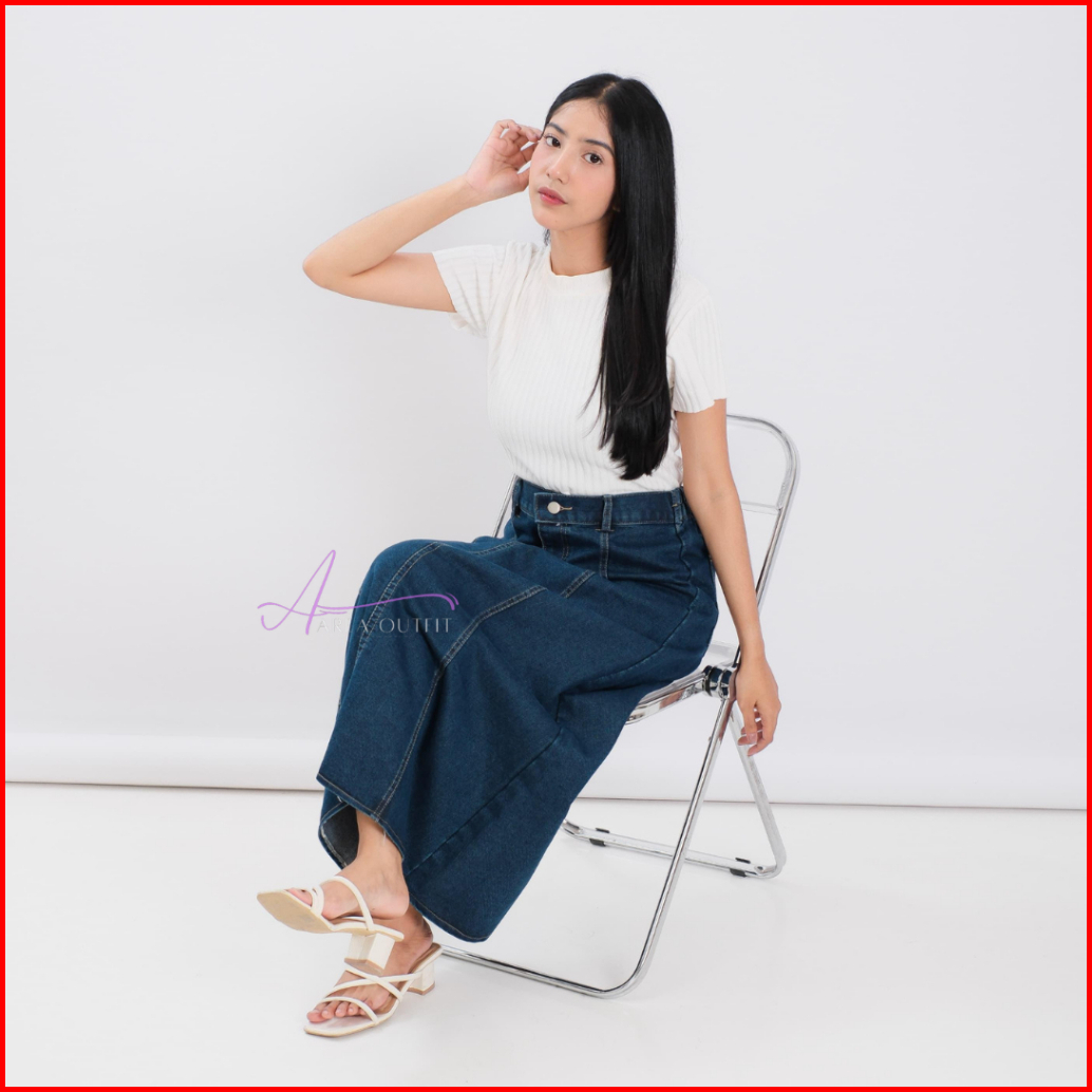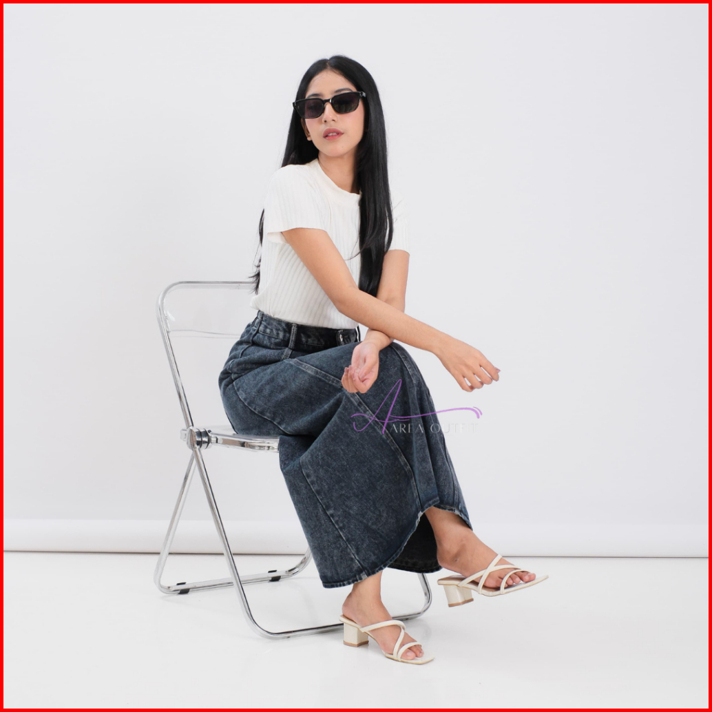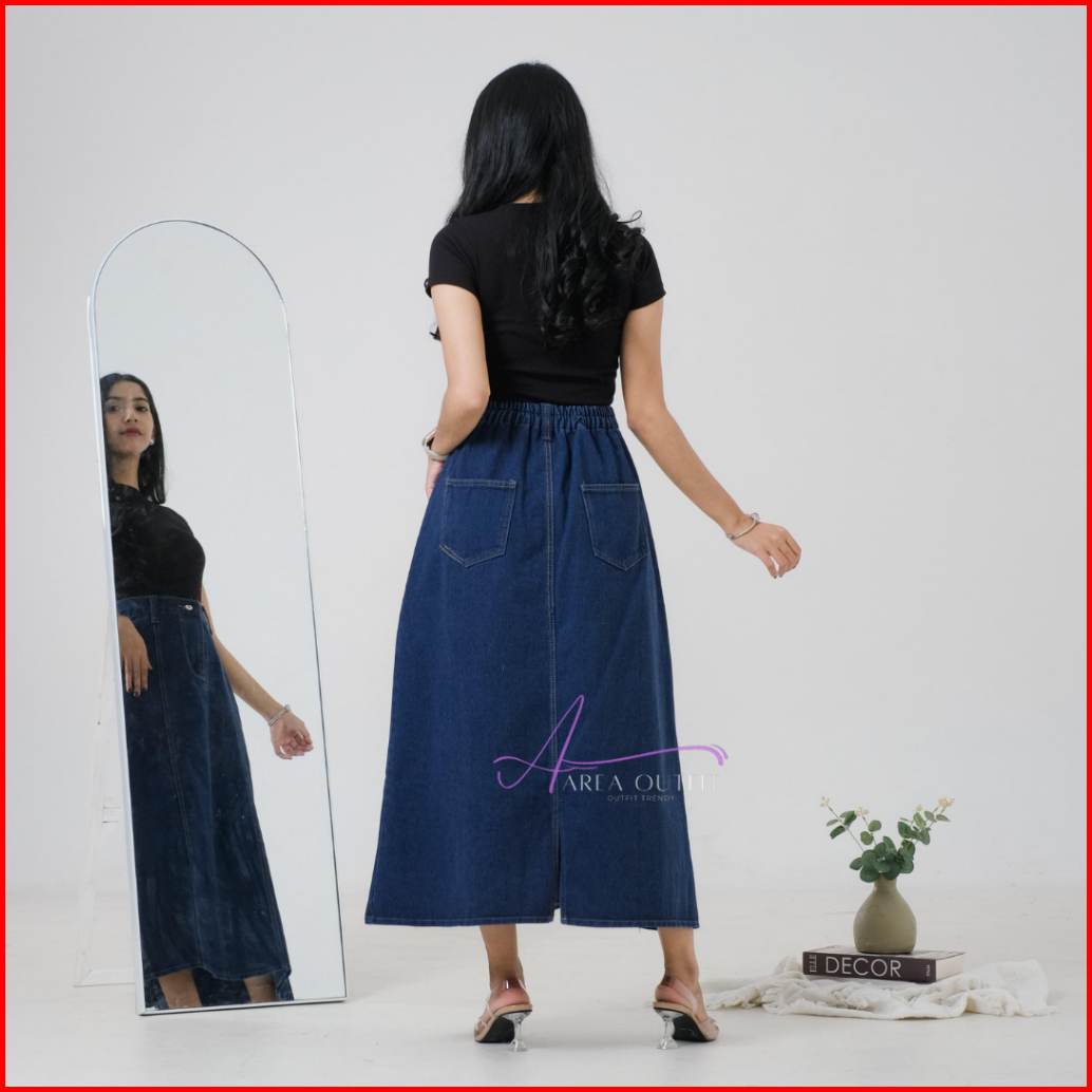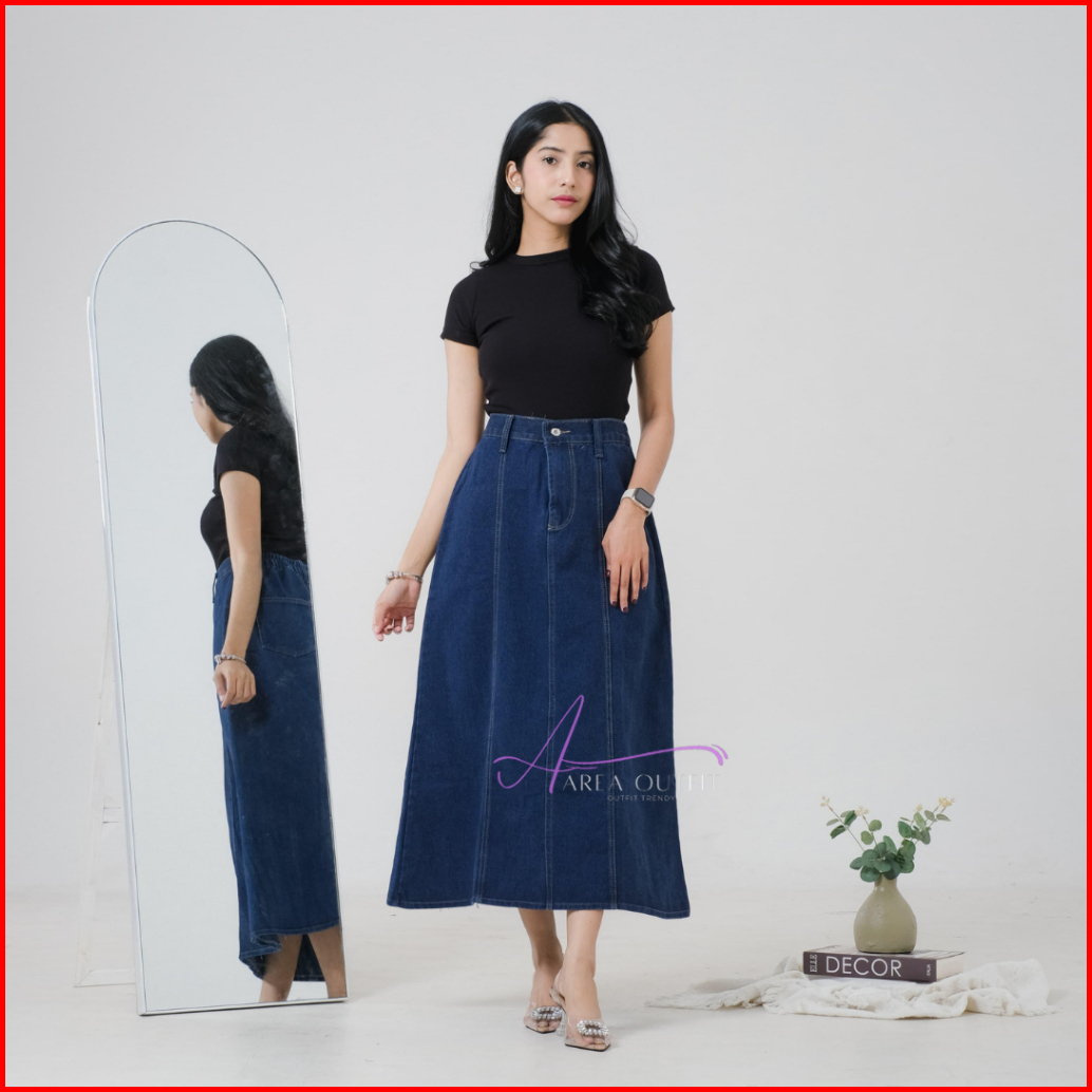 Ellen Rok Jeans Mayung Wanita A- Line Skirt Panjang Pinggang Highwaist Premium