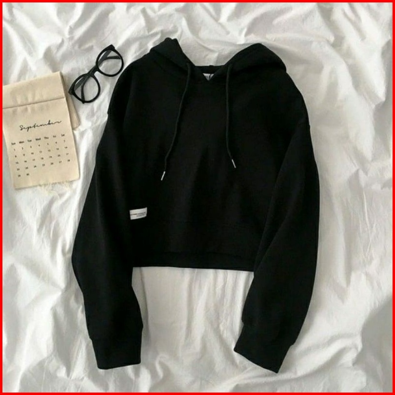 Abs Sweater Hoodie Crop Basic Korean Style Bahan Cotton Fleece S M L Xl Xxl