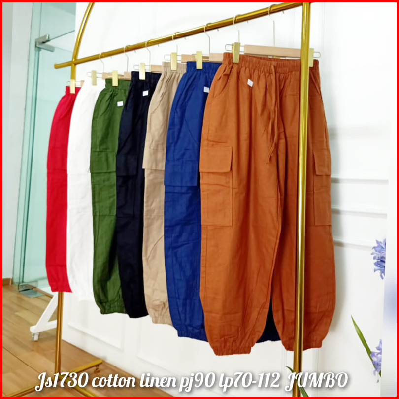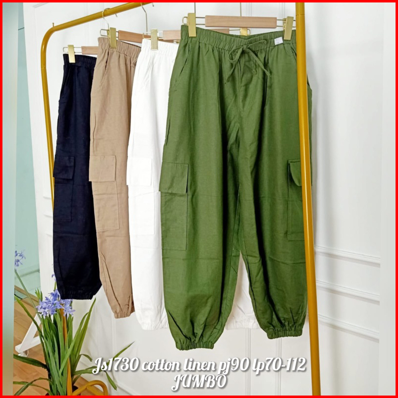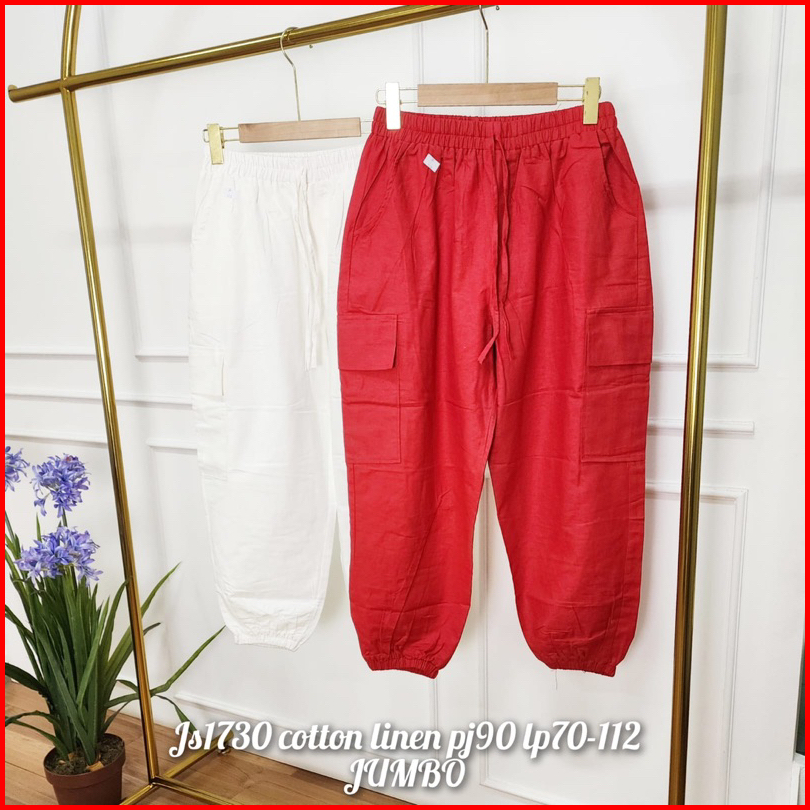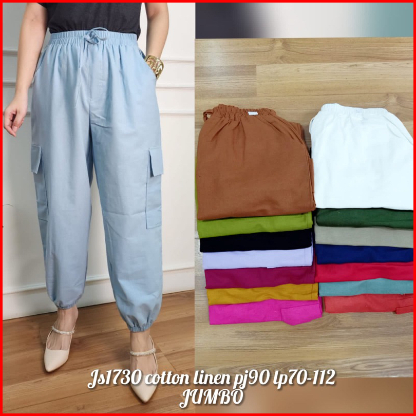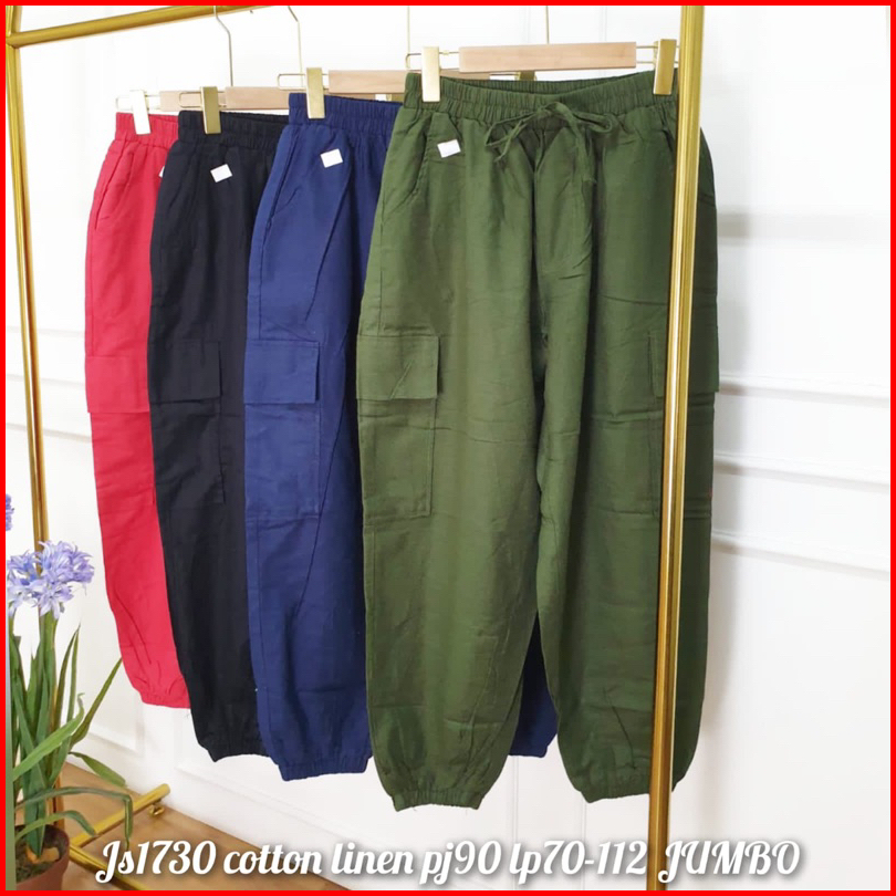 Celana Bawahan Kargo Jogger Wanita Lp112 Jumbo Bahan Linen Js1730