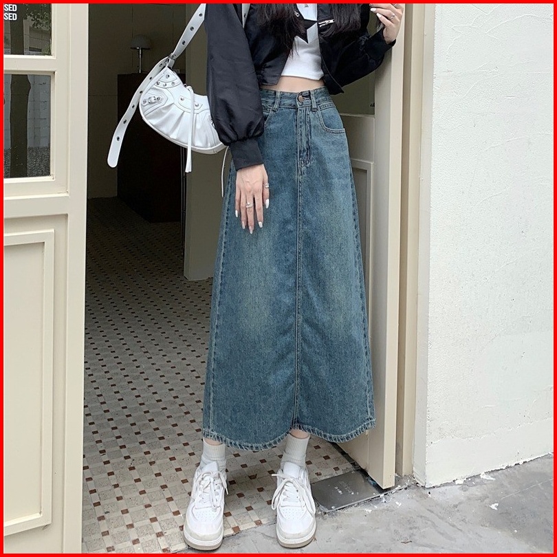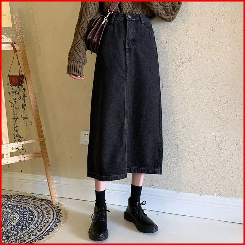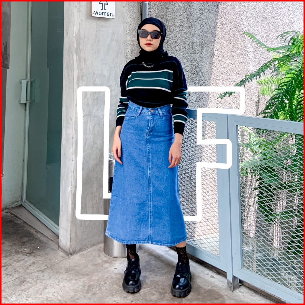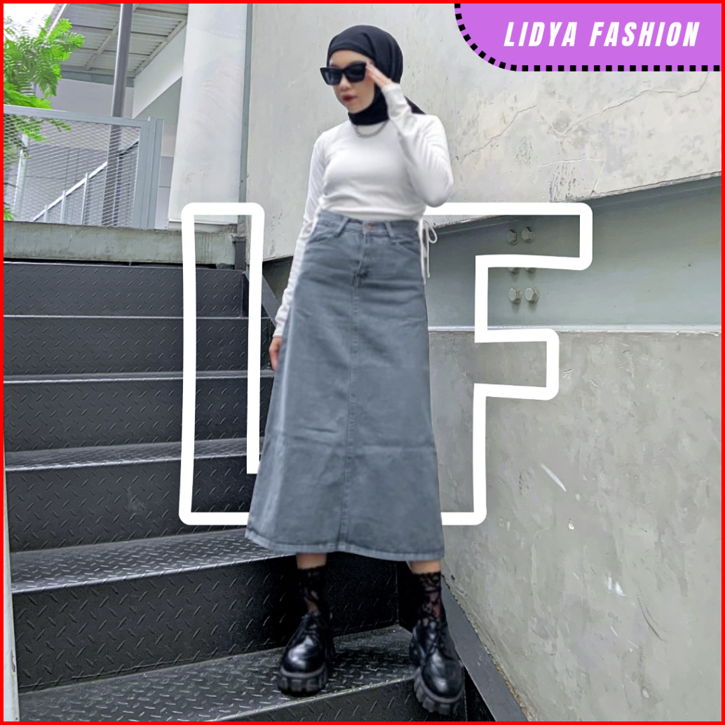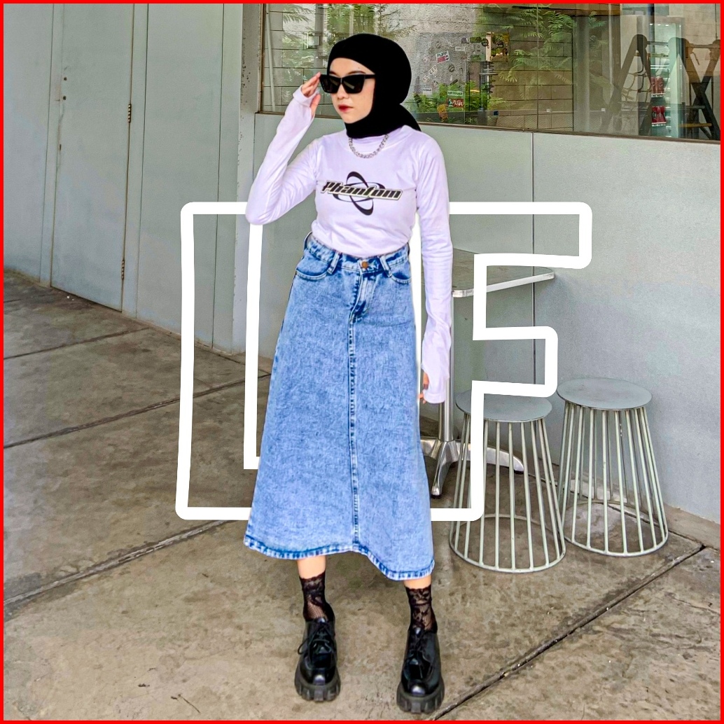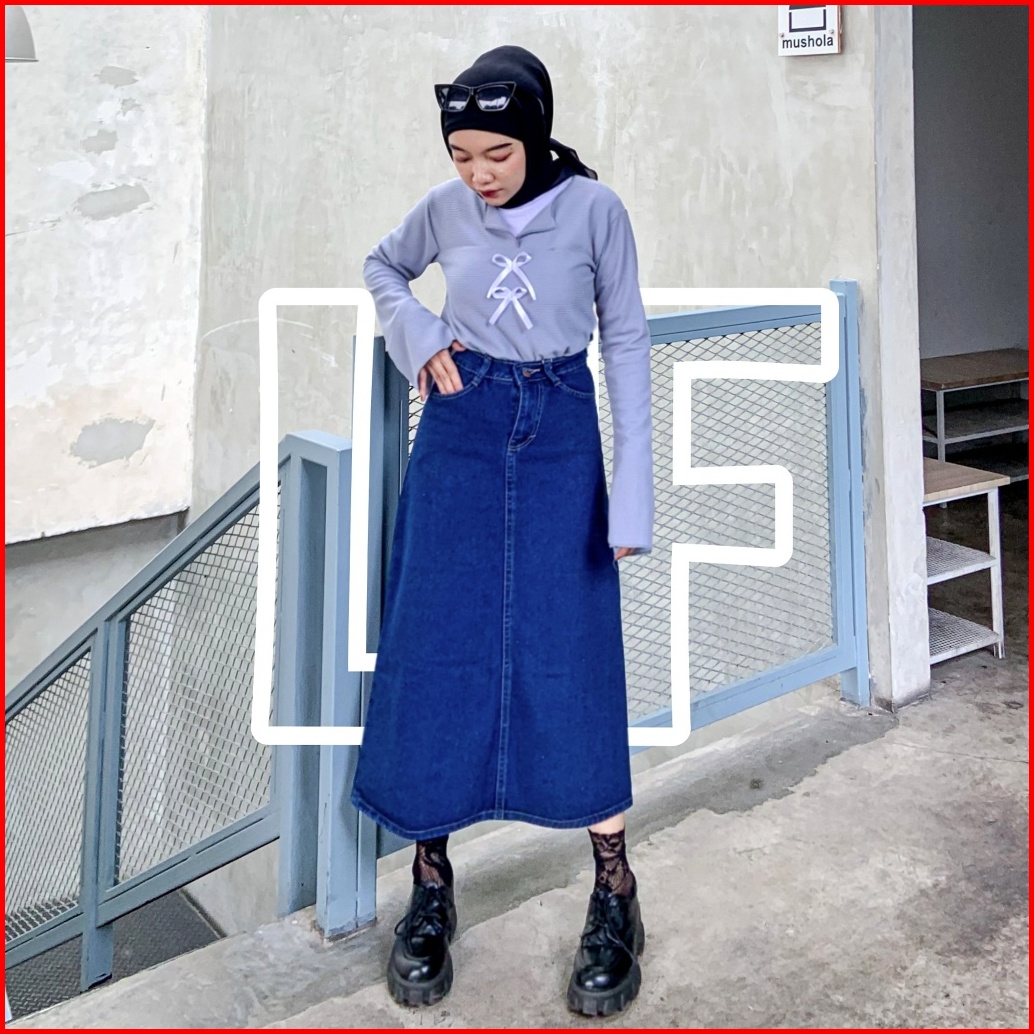 Highwaist Rok Jeans Wanita Panjang 7 8 Model A-line - Basic Skirt Jeans 780