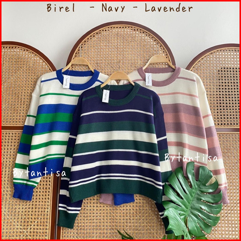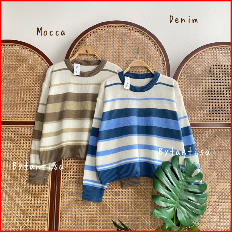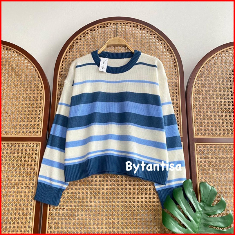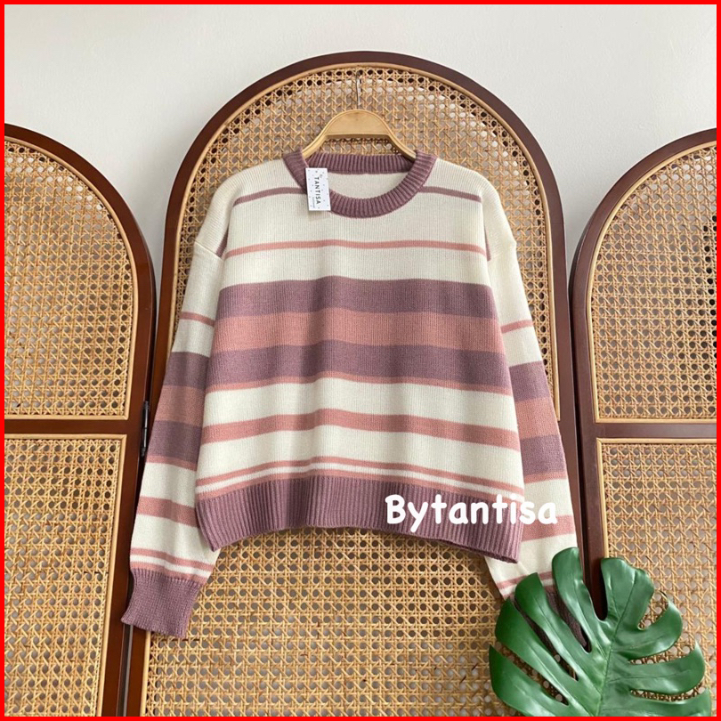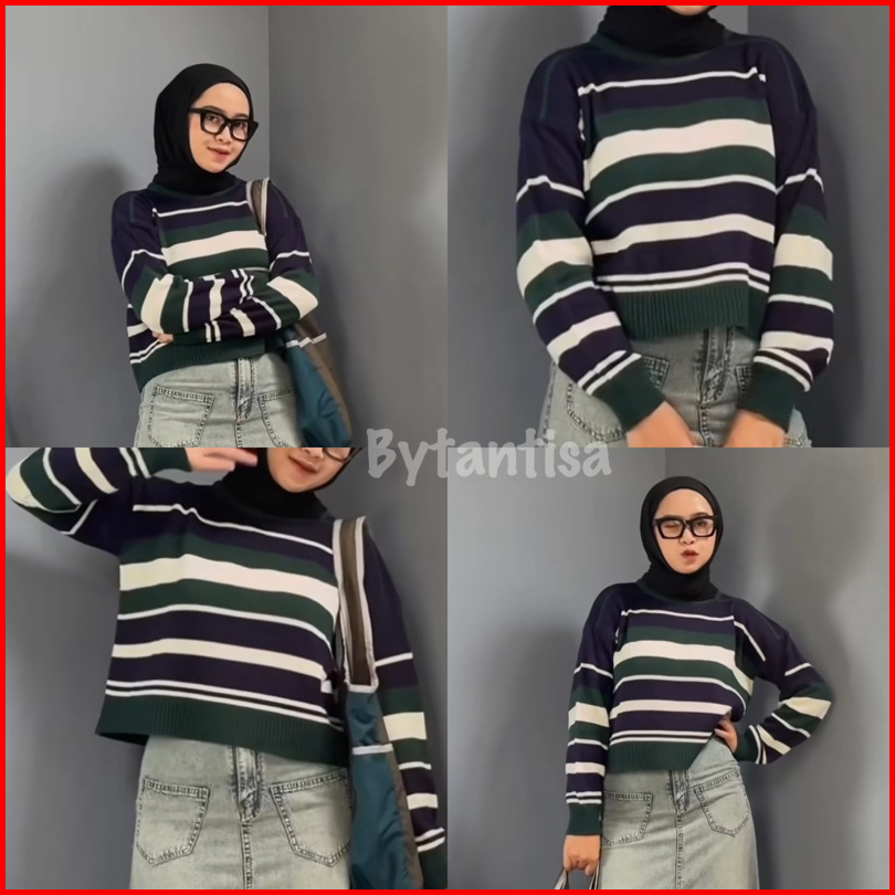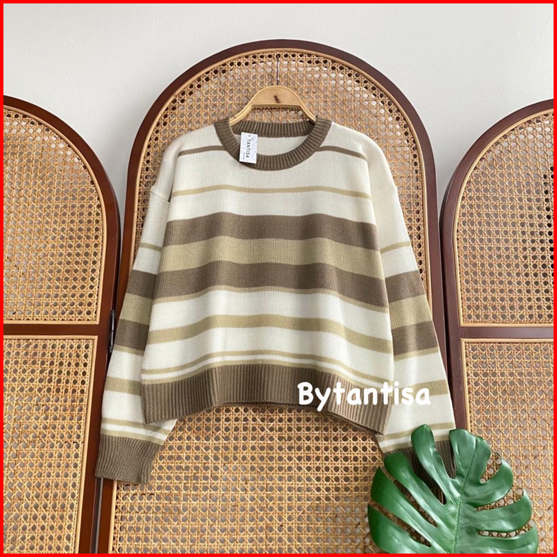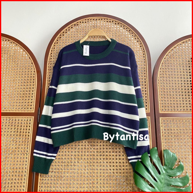 Bytantisa - Sweater Rajut Crop Nicole Motif Garis