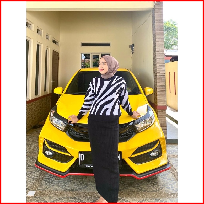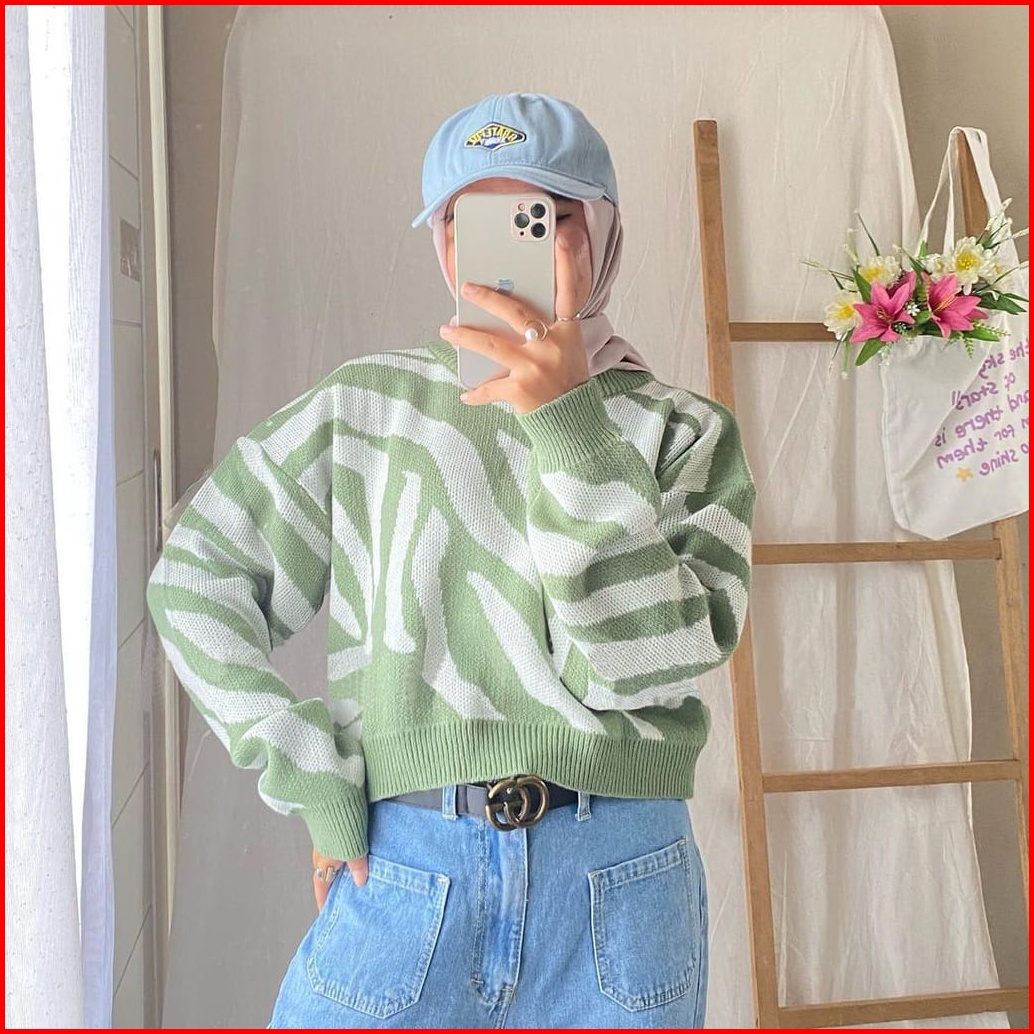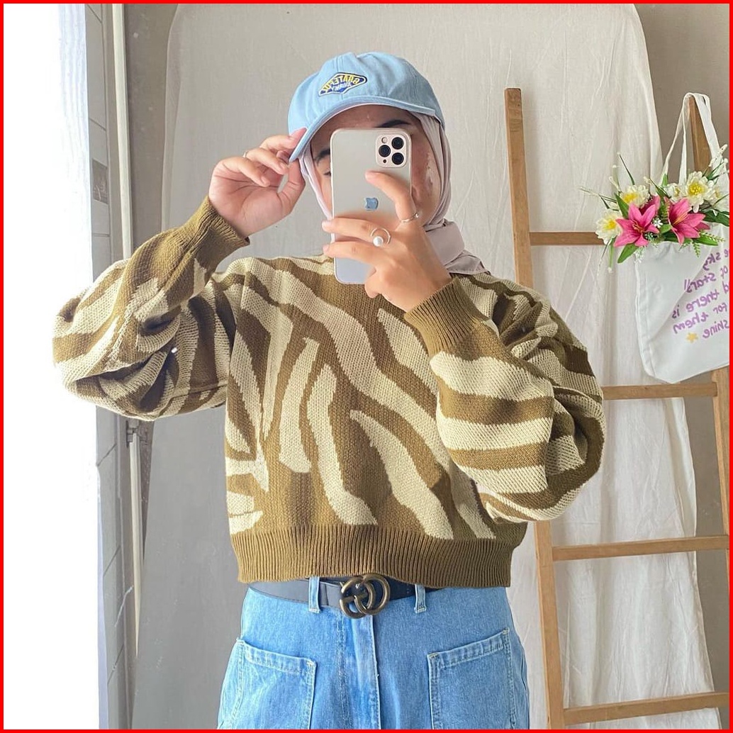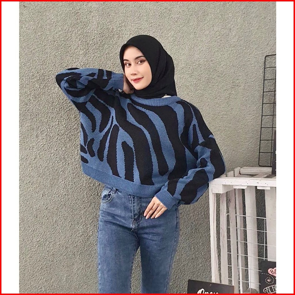 Zebra Crop Knit Sweater Rajut Premium Blouse Wanita Zebra Atasan Wanita Kekinian Sweater Crop