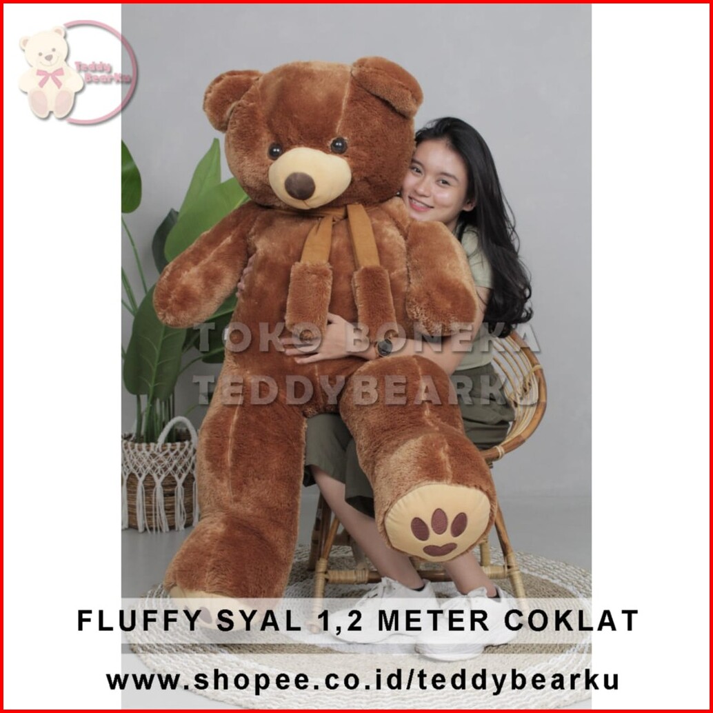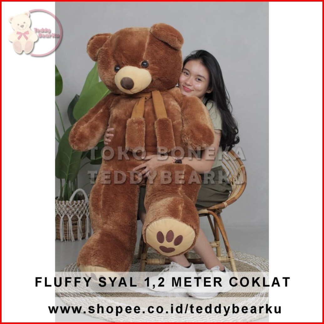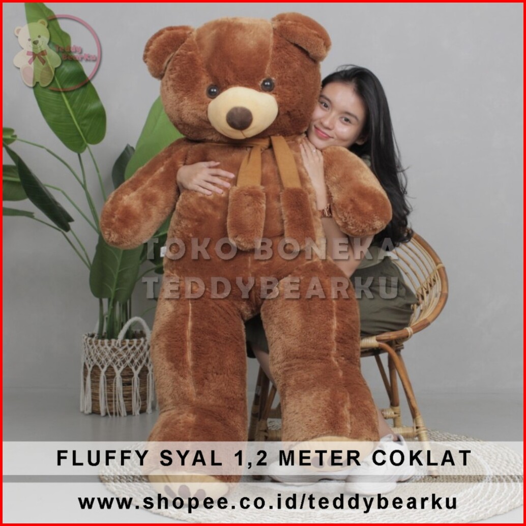 Boneka Teddy Bear Fluffy Syal Super Super Jumbo 1.2 Meter Warna Coklat