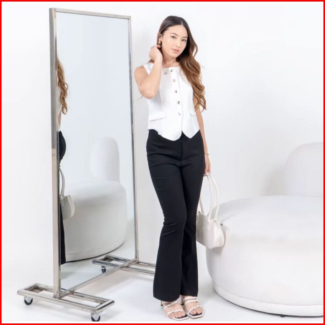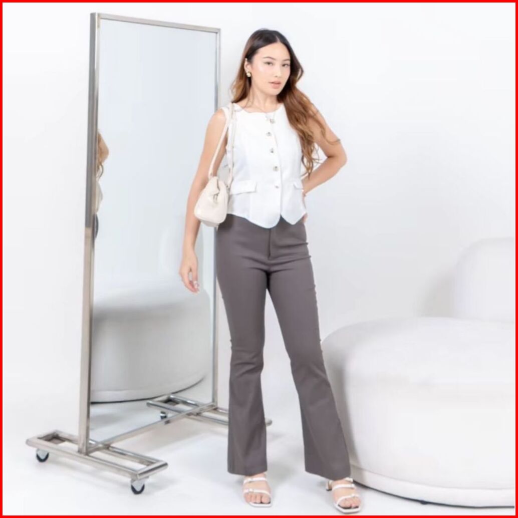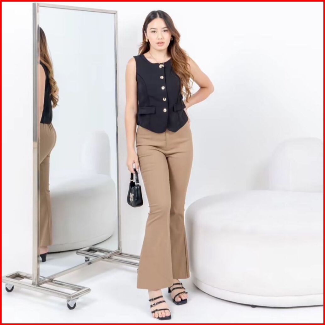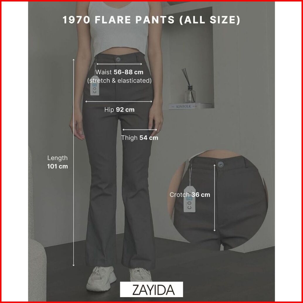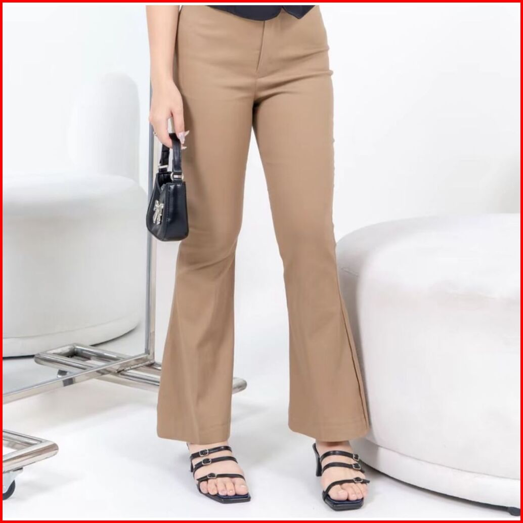 Zayida Flare Pants - Highwaist Kulot Cutbray - Celana Kantor Formal Casual Chinos Stretch Melar