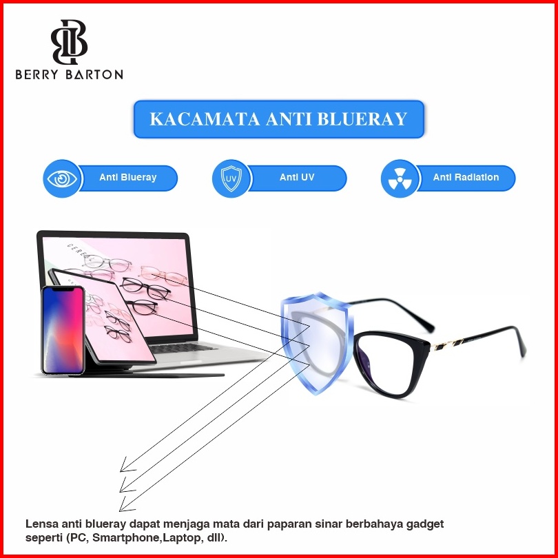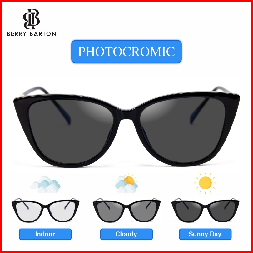 Berrybarton - Kacamata Cat Eye Anti Radiasi Photocromic Blueray Kacamata Minus Plastik Wanita 9809