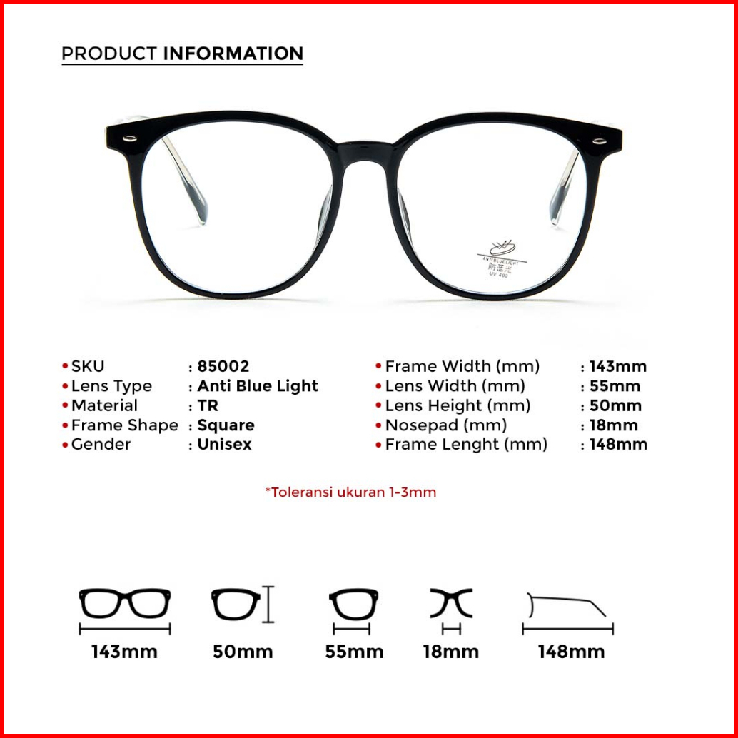 Berrybarton Kacamata Kotak Lensa Anti Radiasi Photocromic Blueray Kacamata Plastik Tr Minus Pria Wanita 85002